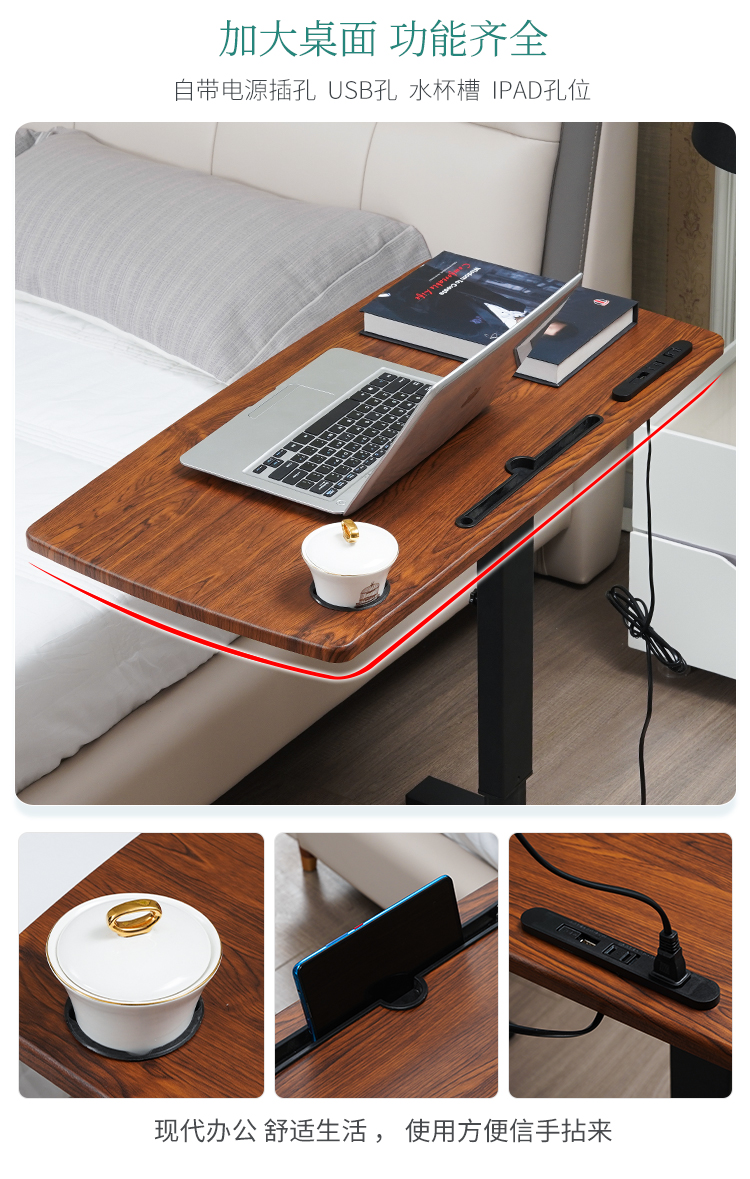 • USB升降移动黑架+深木纹45*85