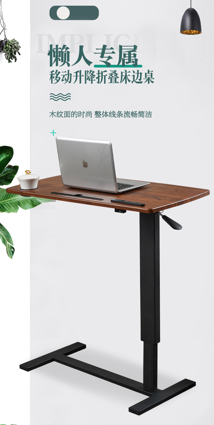 • 可折叠升降移动黑架+深木纹40*80