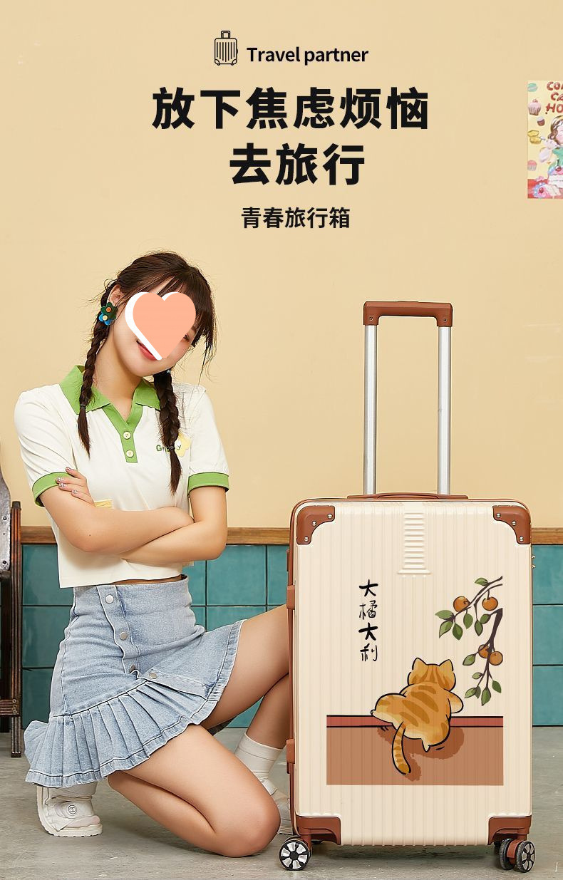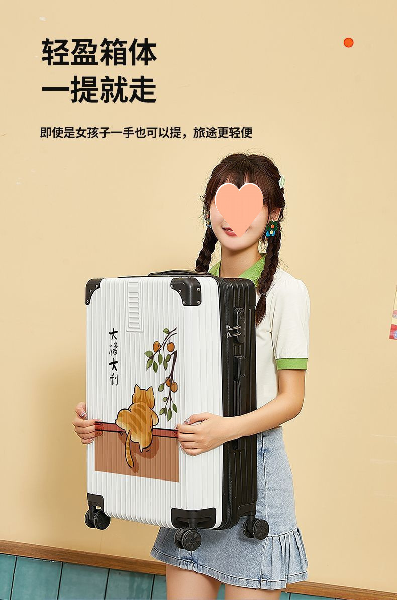 인터넷 연예인 새로운 여행 가방 여성 귀여운 빅 오렌지 빅 레버 코드 박스 만화 내구성