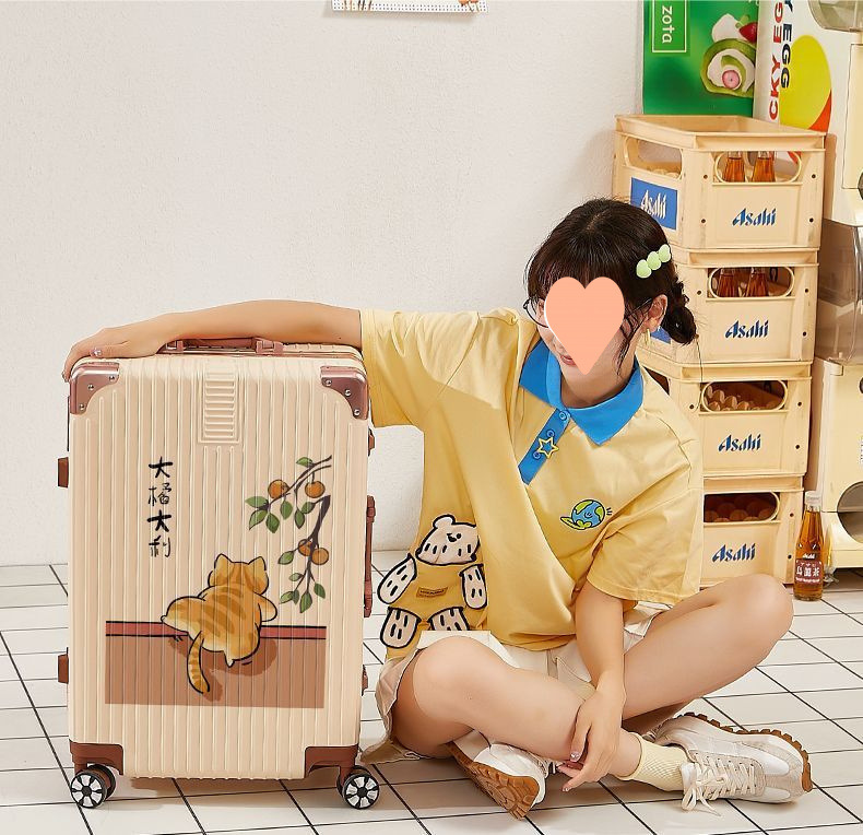 인터넷 연예인 새로운 여행 가방 여성 귀여운 빅 오렌지 빅 레버 코드 박스 만화 내구성스토어 가기