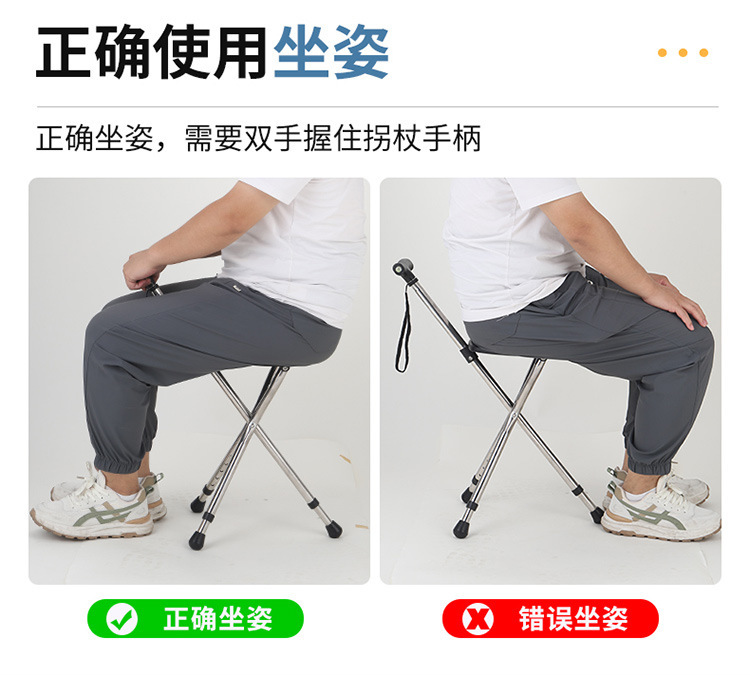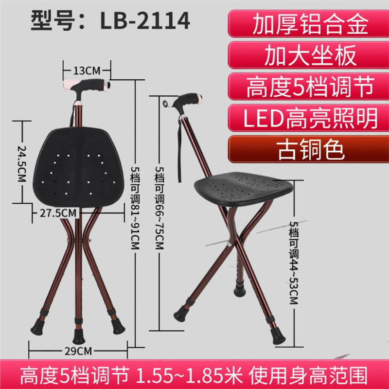 [확대된 좌석판] 노인들이 앉을 수 있는 접이식 지팡이 의자, 미끄럼 방지 지팡이, 노인용 조명이 있는 의자, 지팡이 의자스토어 가기