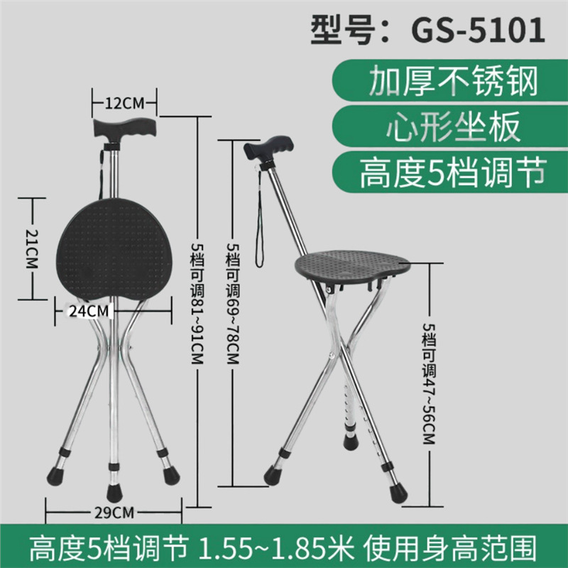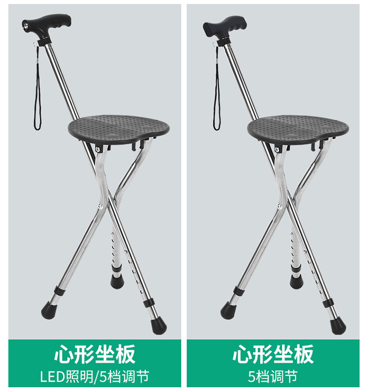 [확대된 좌석판] 노인들이 앉을 수 있는 접이식 지팡이 의자, 미끄럼 방지 지팡이, 노인용 조명이 있는 의자, 지팡이 의자