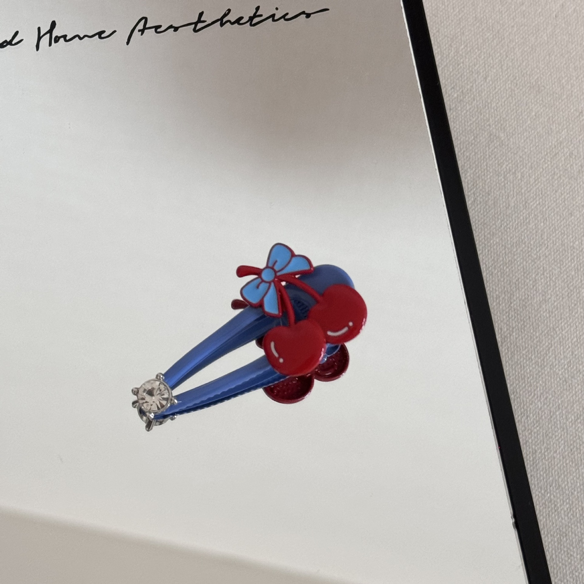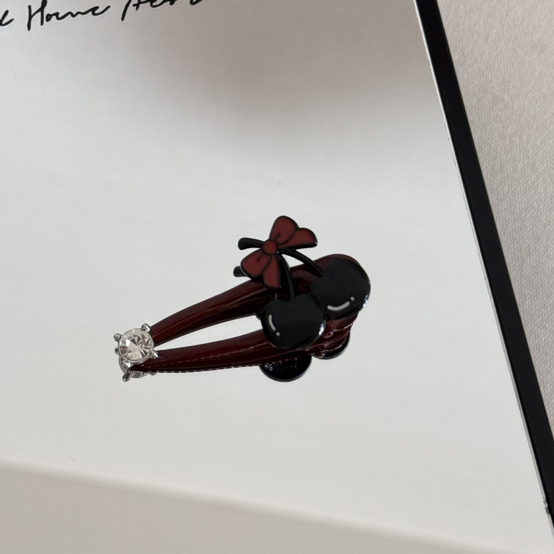 프랑스 고급 레드 체리 라인스톤 머리핀, 귀여운 사이드 클립, 앞머리 클립, 사이드 덕빌 클립, 새로운 헤어 액세서리스토어 가기