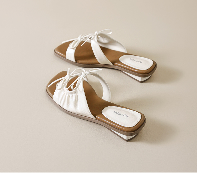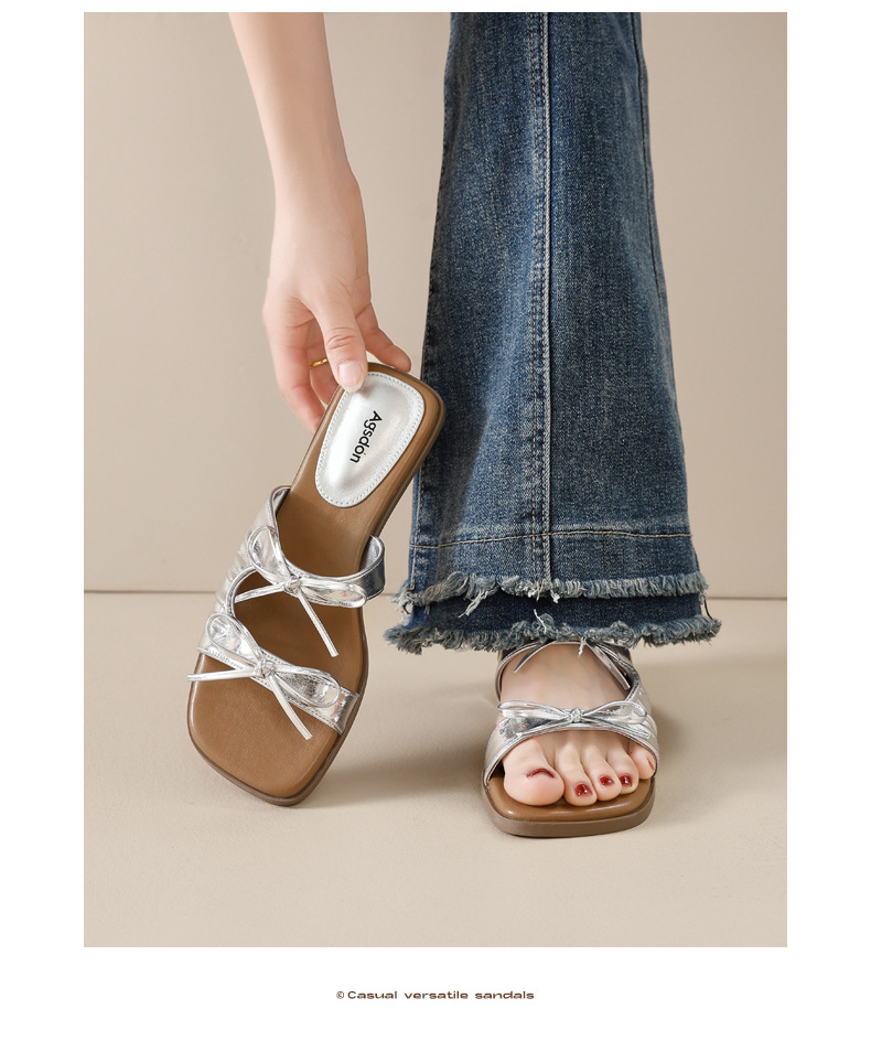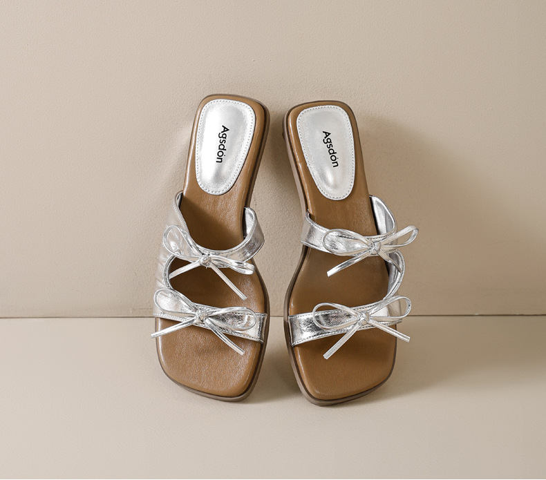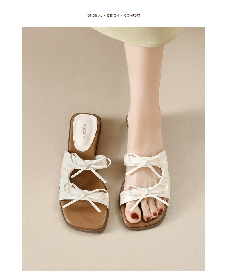 여성용 여름 아우구시덴 프렌치 슬리퍼 2025 스커트가 있는 새로운 로우힐 보우 비치 샌들