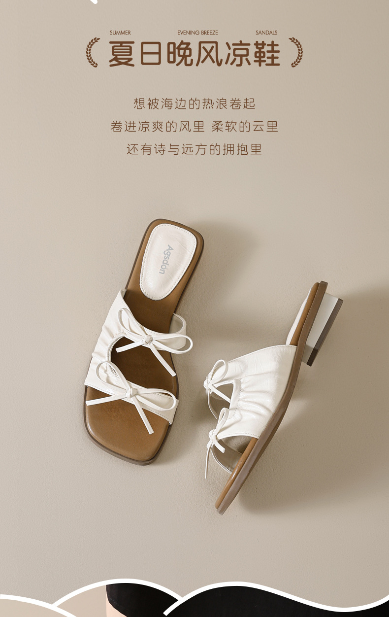 여성용 여름 아우구시덴 프렌치 슬리퍼 2025 스커트가 있는 새로운 로우힐 보우 비치 샌들스토어 가기
