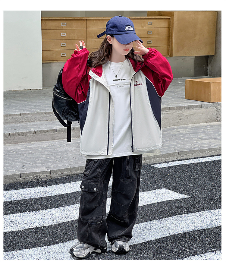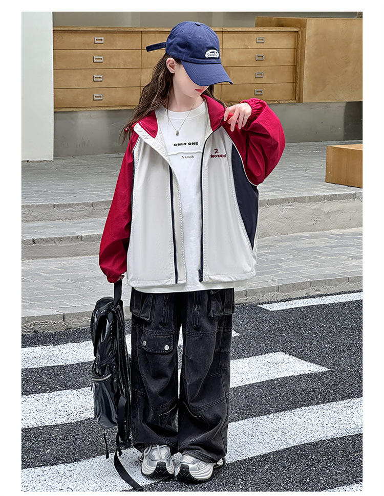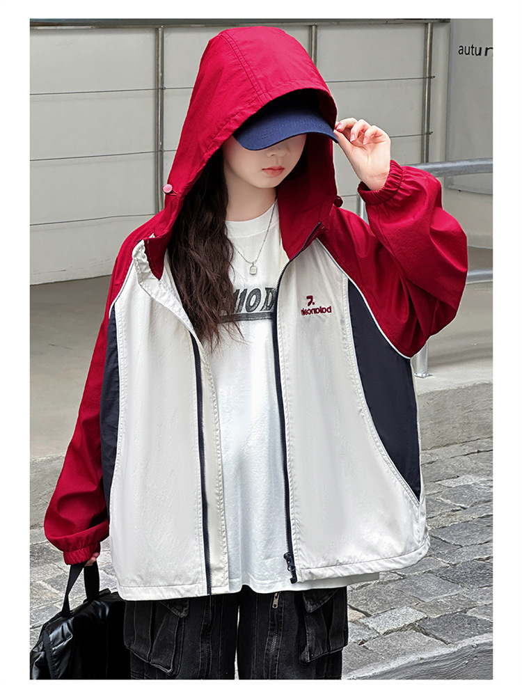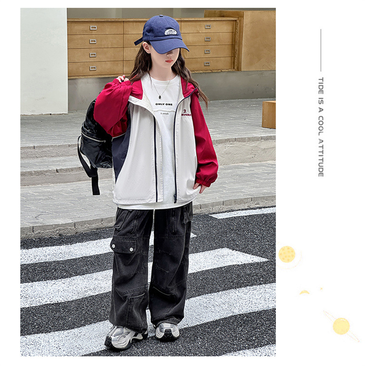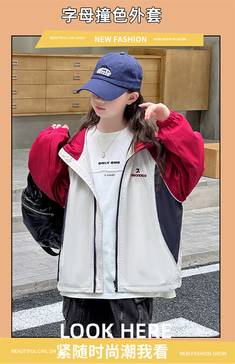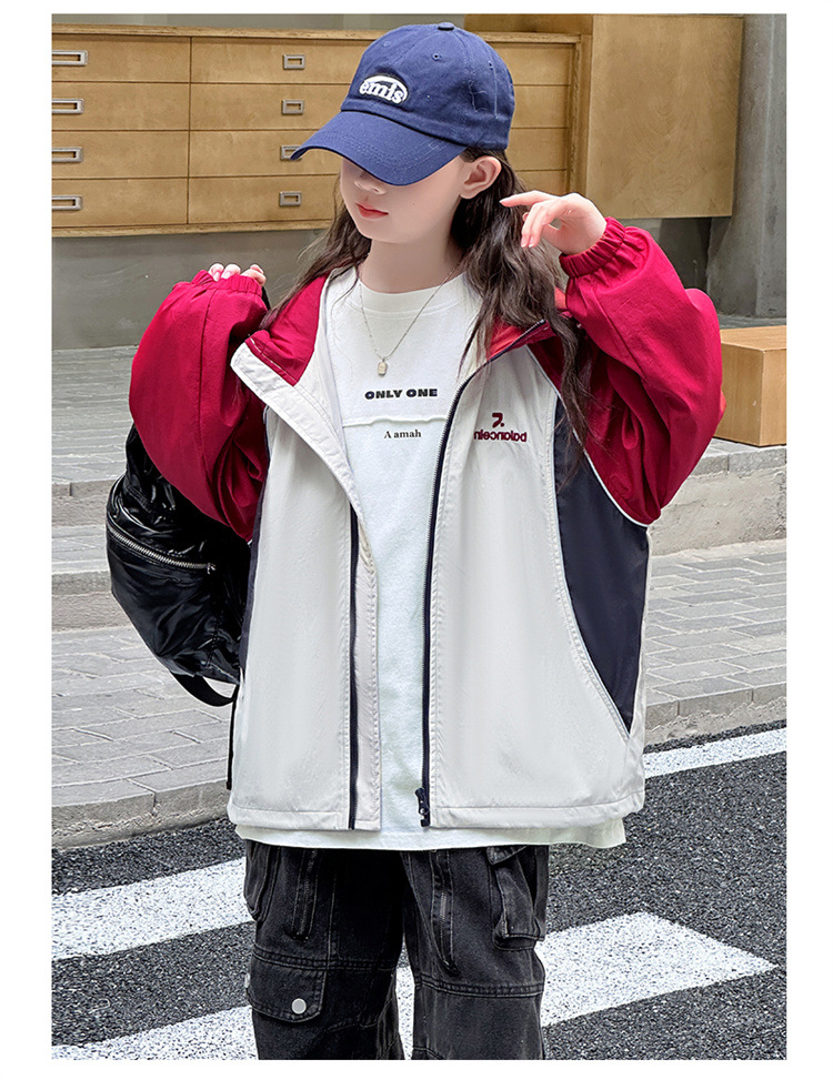 여아 코트 봄, 가을 아동 재킷 2025 가을 새로운 스타일 여아 재킷 서양식 대형 아동 의류 후드 탑스토어 가기