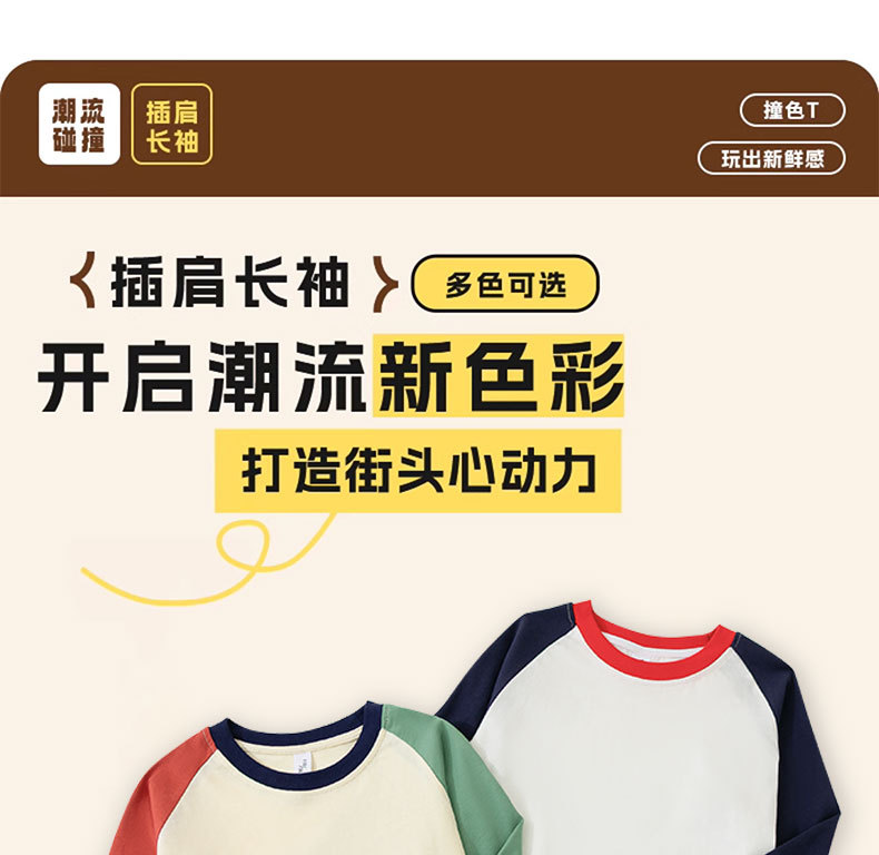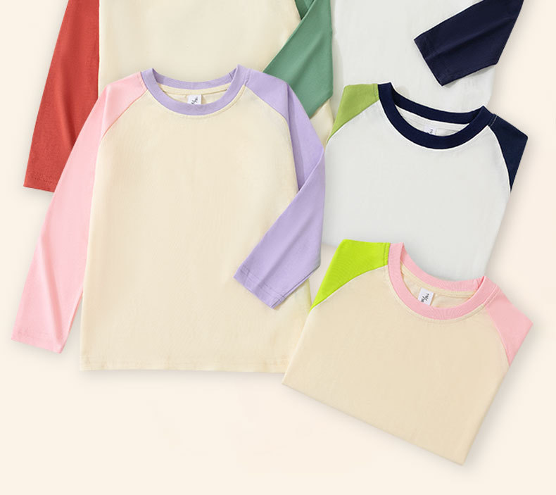 남아용 긴팔 티셔츠, 순면, 중대형 아동용 대비 색상 라글란 슬리브 탑, 봄, 가을 아동용 라운드 넥 풀오버, 깔끔한 버전스토어 가기