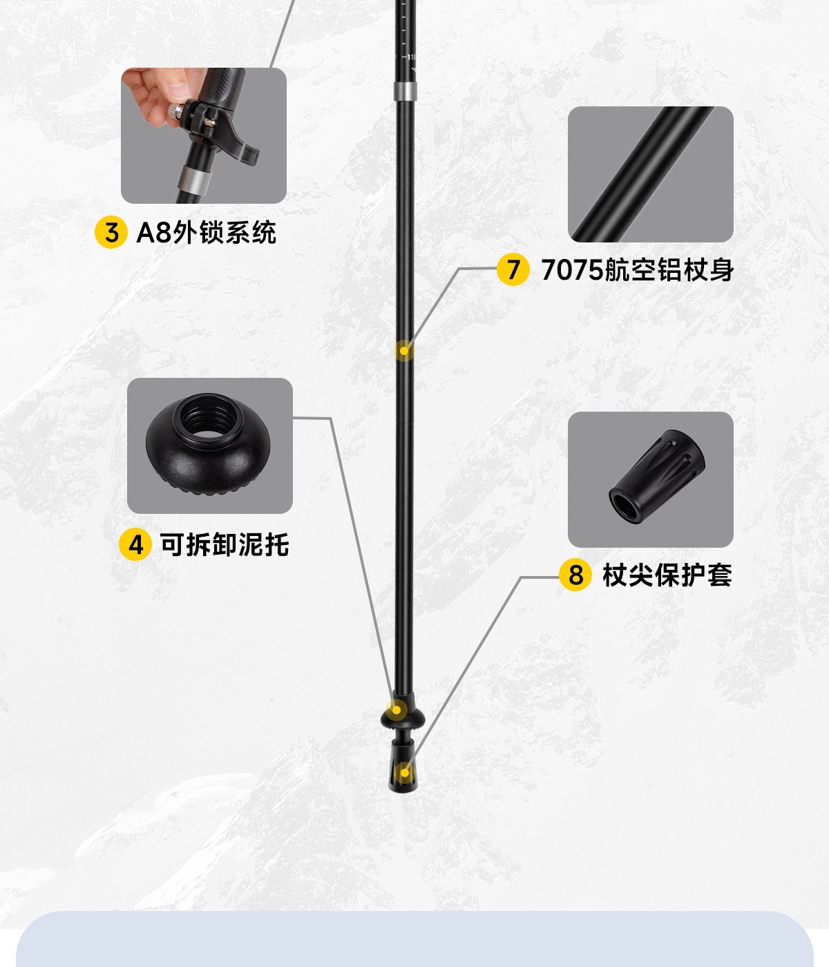 Wilderness Light 7075 알루미늄 합금 트레킹 스틱 고강도 경량 접이식 남성 및 여성 야외 하이킹 및 등산 장비