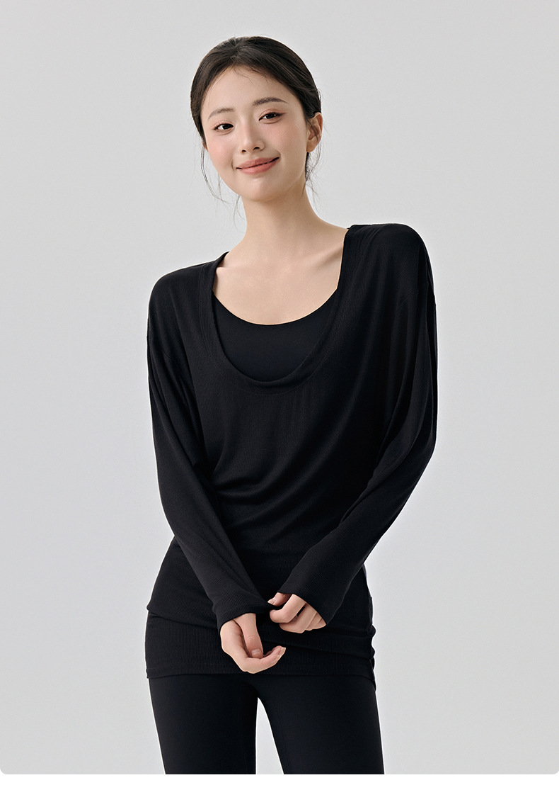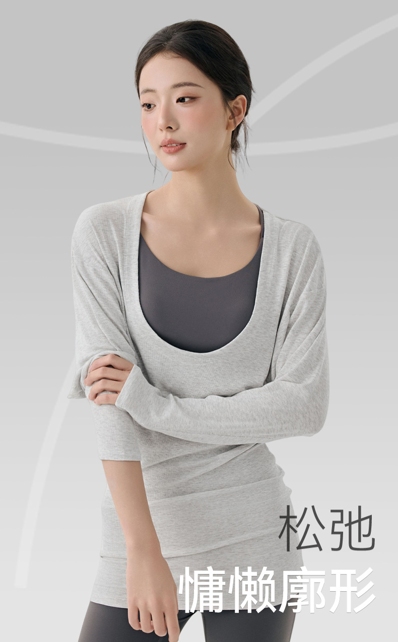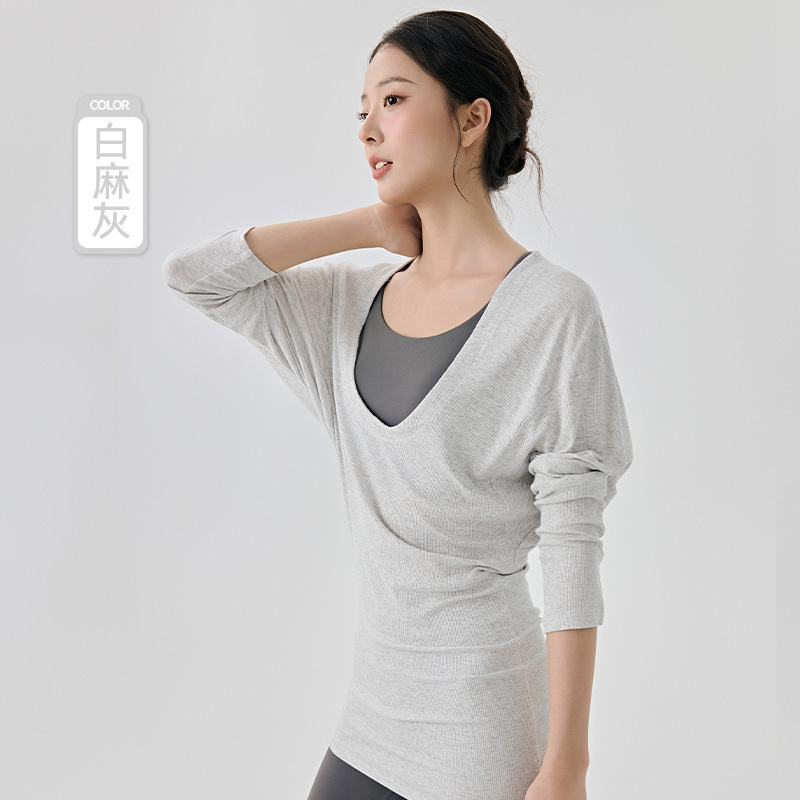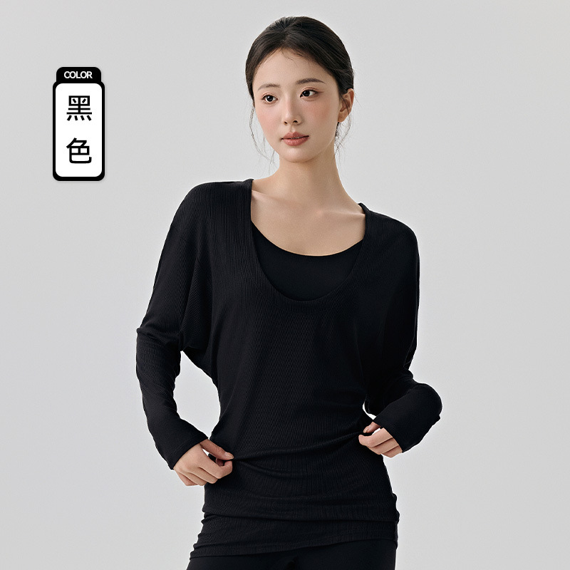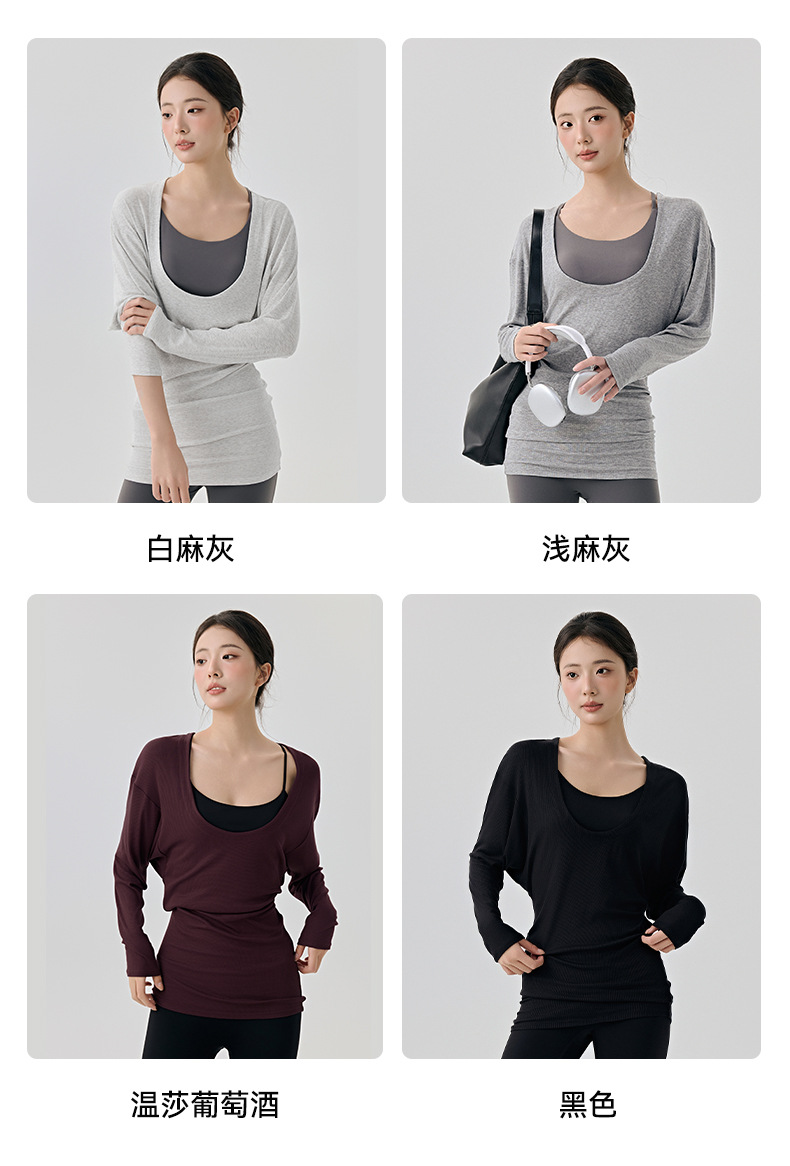 大U领普拉提训练运动罩衫女遮屁股慵懒宽松蝙蝠袖长袖瑜伽服上衣