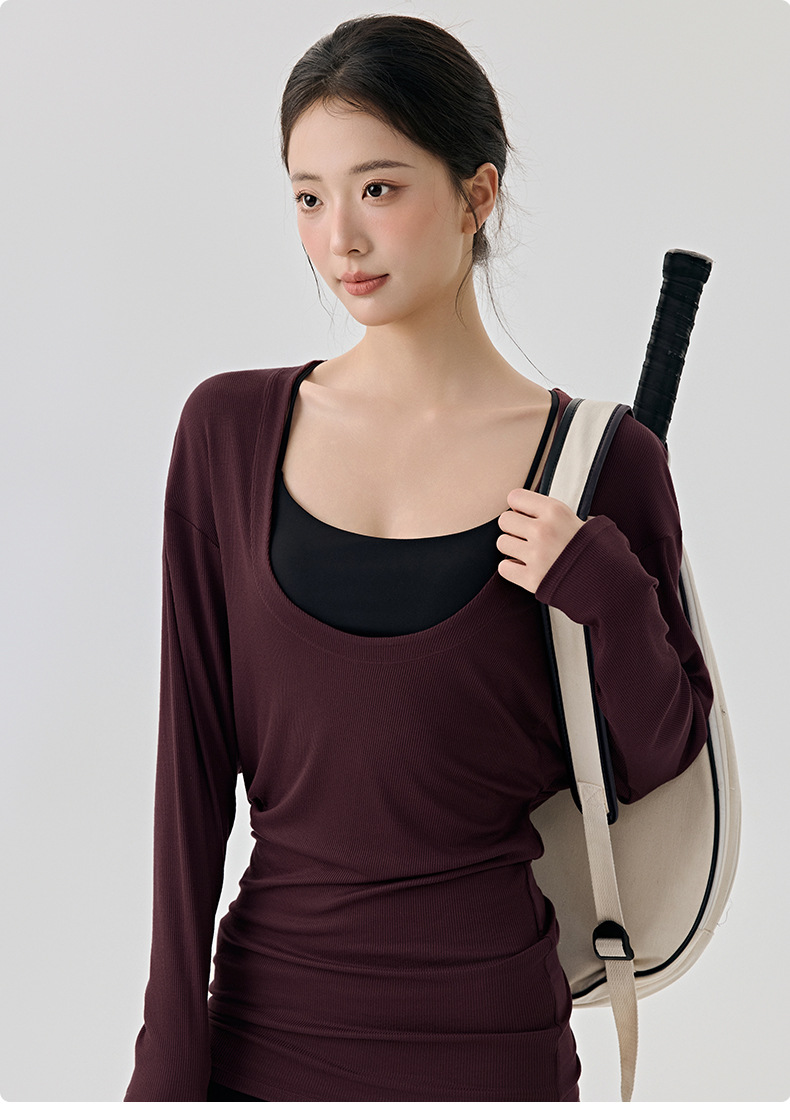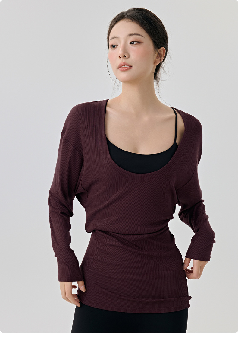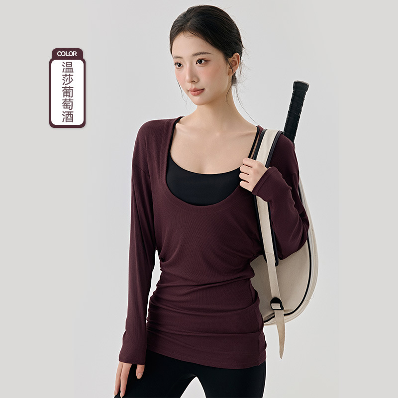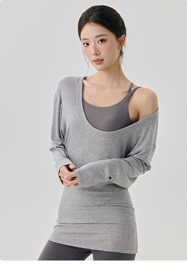大U领普拉提训练运动罩衫女遮屁股慵懒宽松蝙蝠袖长袖瑜伽服上衣