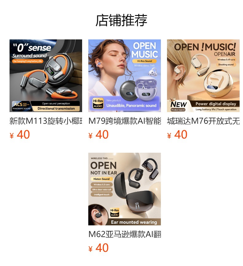 M100 국경 간 핫 모델 클립 온 이어 터치 스마트 컬러 스크린 고품질 블루투스 헤드셋 소스 공장 도매