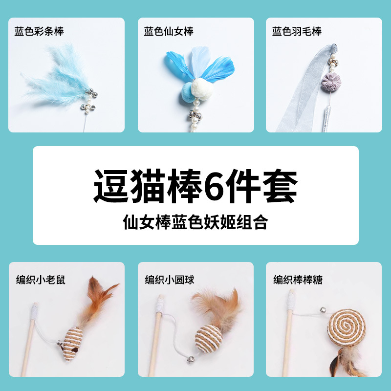 • 【嗨玩套装】带铃铛 逗猫3件套 蔚蓝