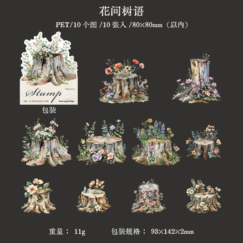 좋은 날 애완동물 스티커 팩 나무 그루터기 코너 시리즈 ins 조경 테마 콜라주 소재 10장