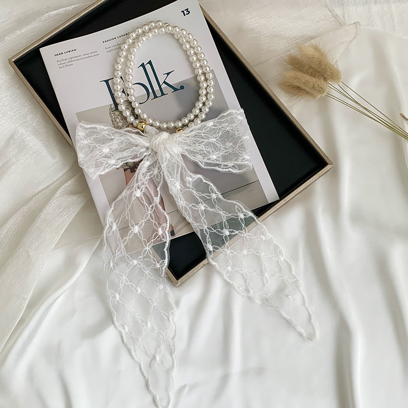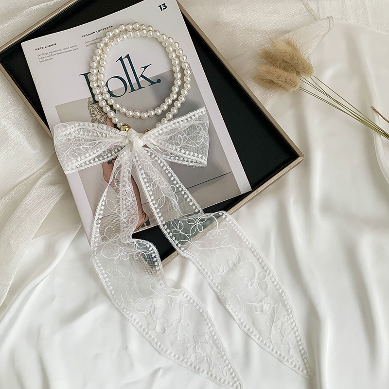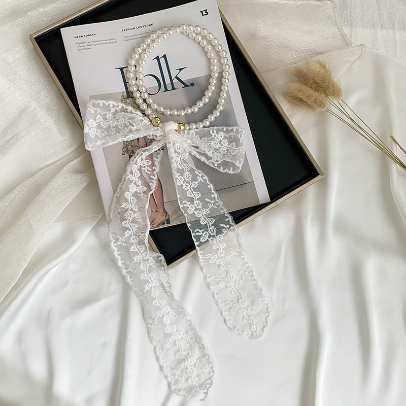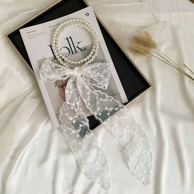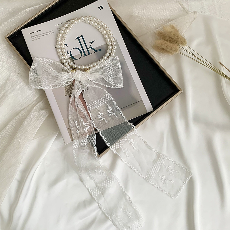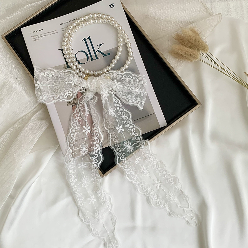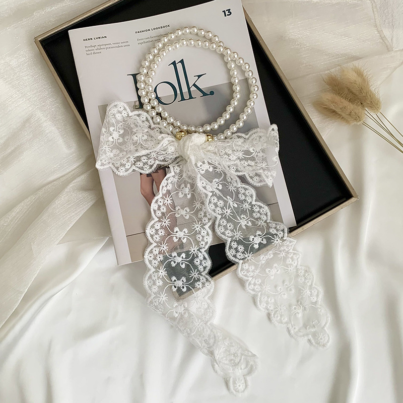 진주 목걸이, 레이스 스카프, 고급 스카프, 다기능 터번, 머리끈, 머리끈, 리본 장식 벨트