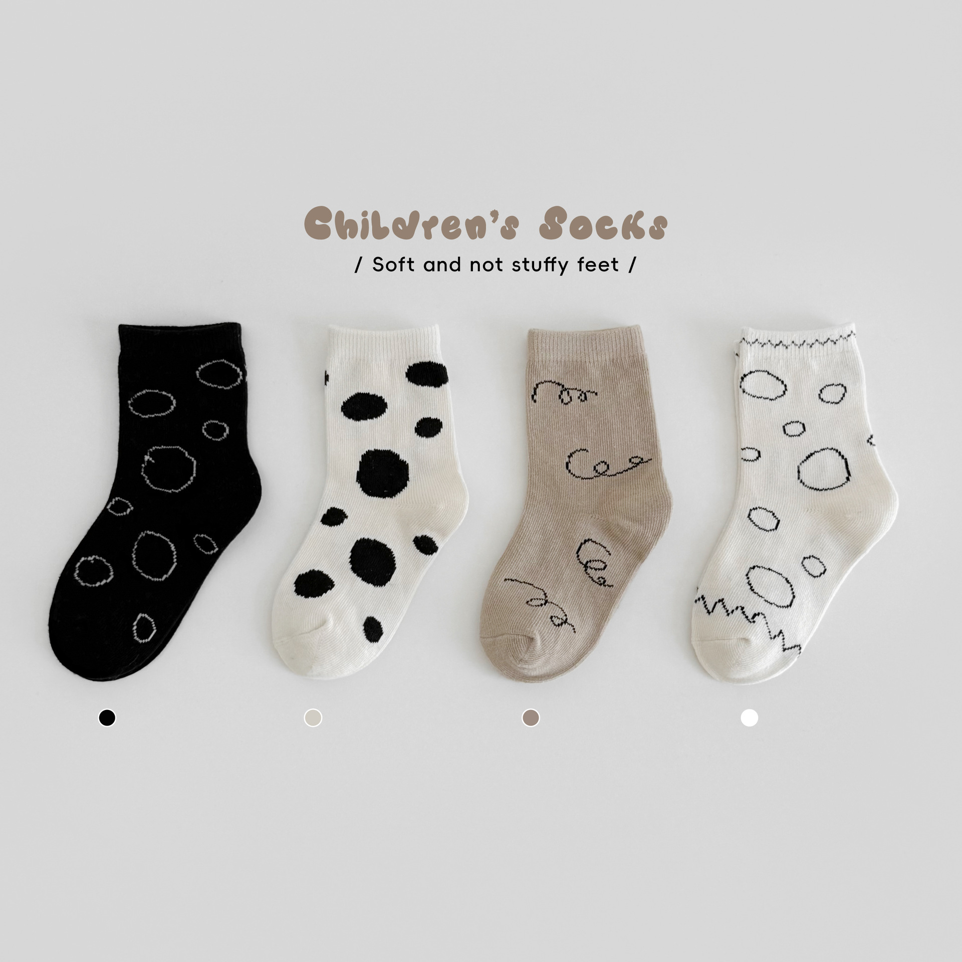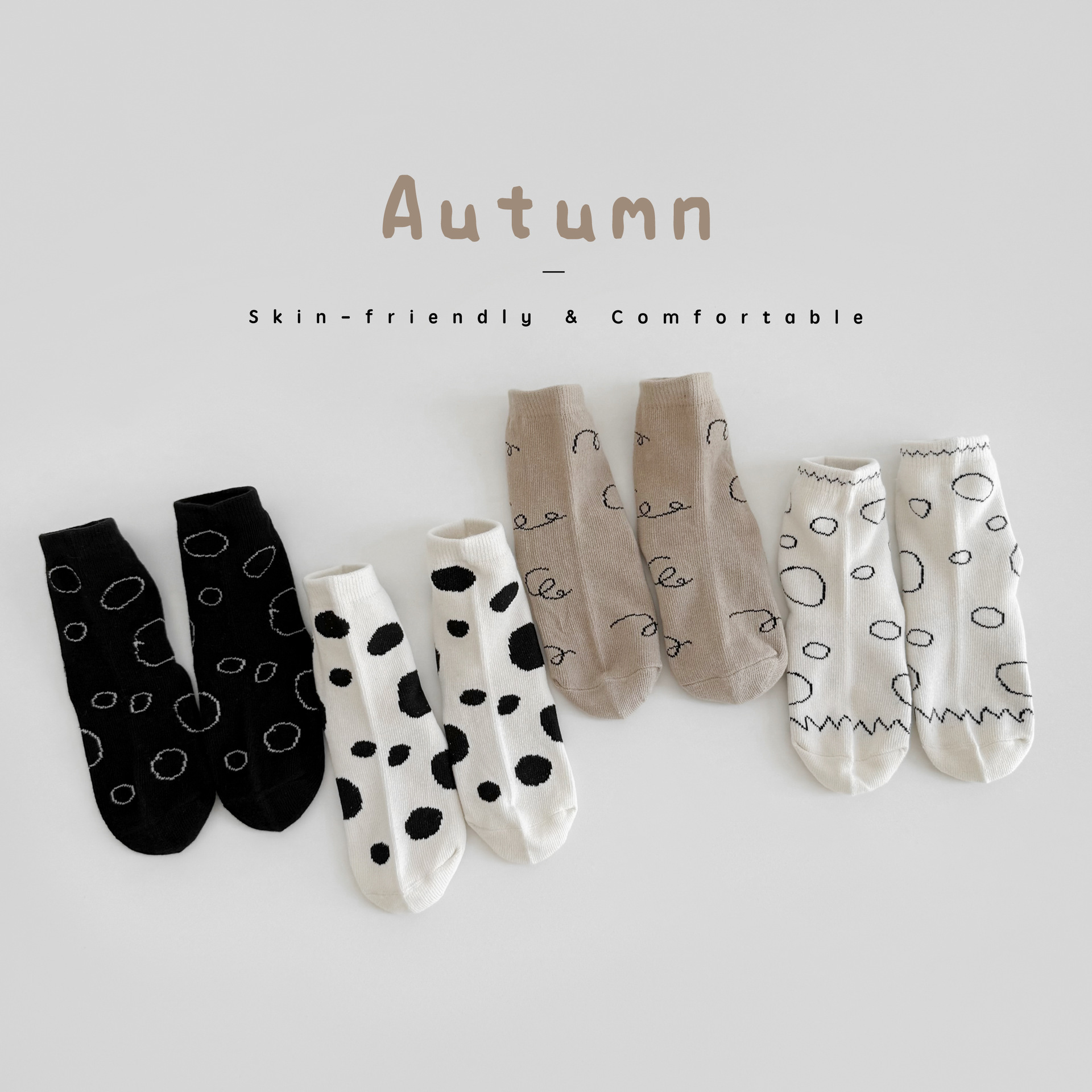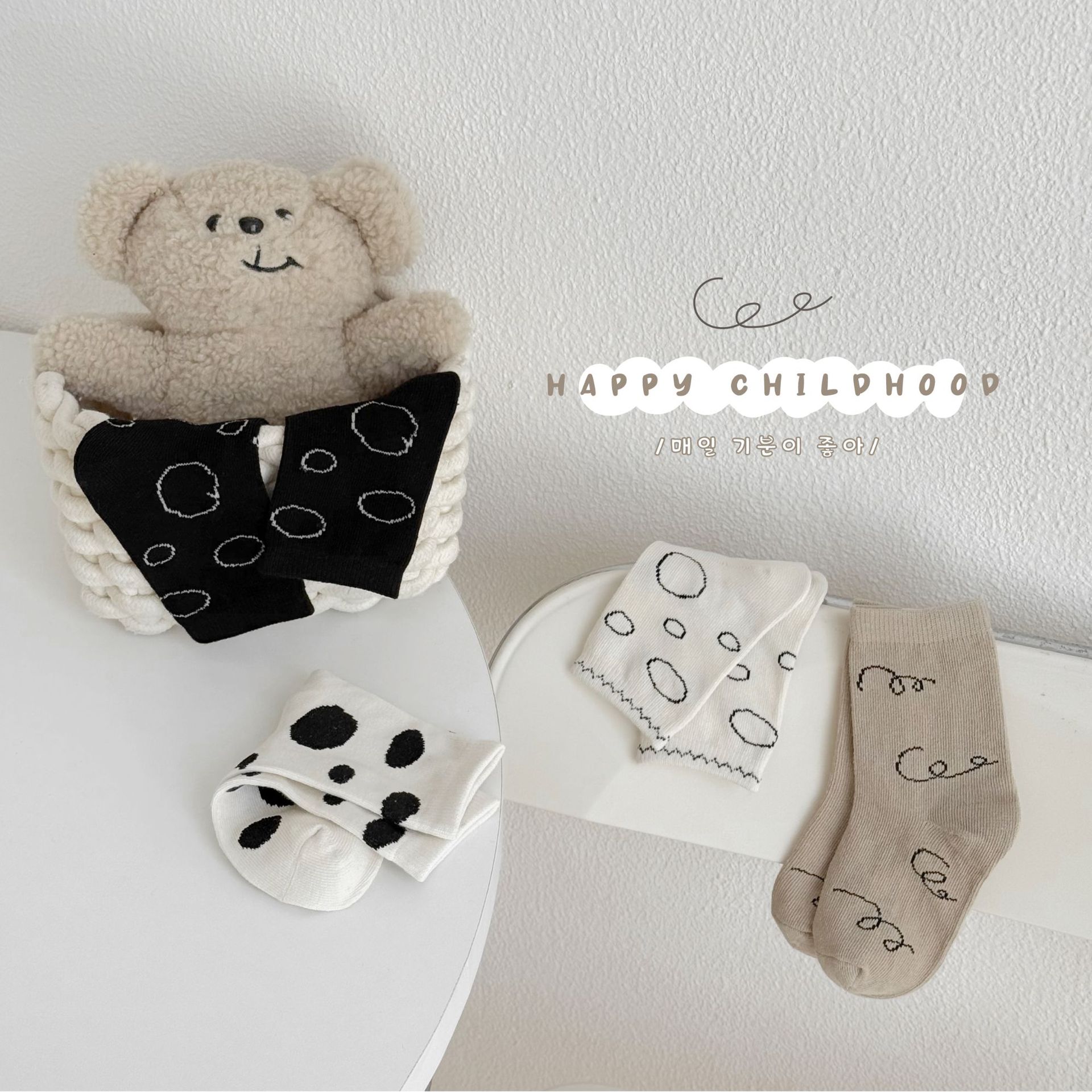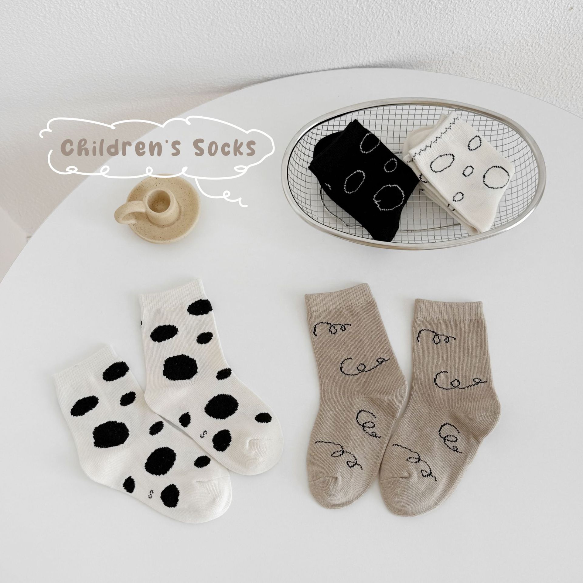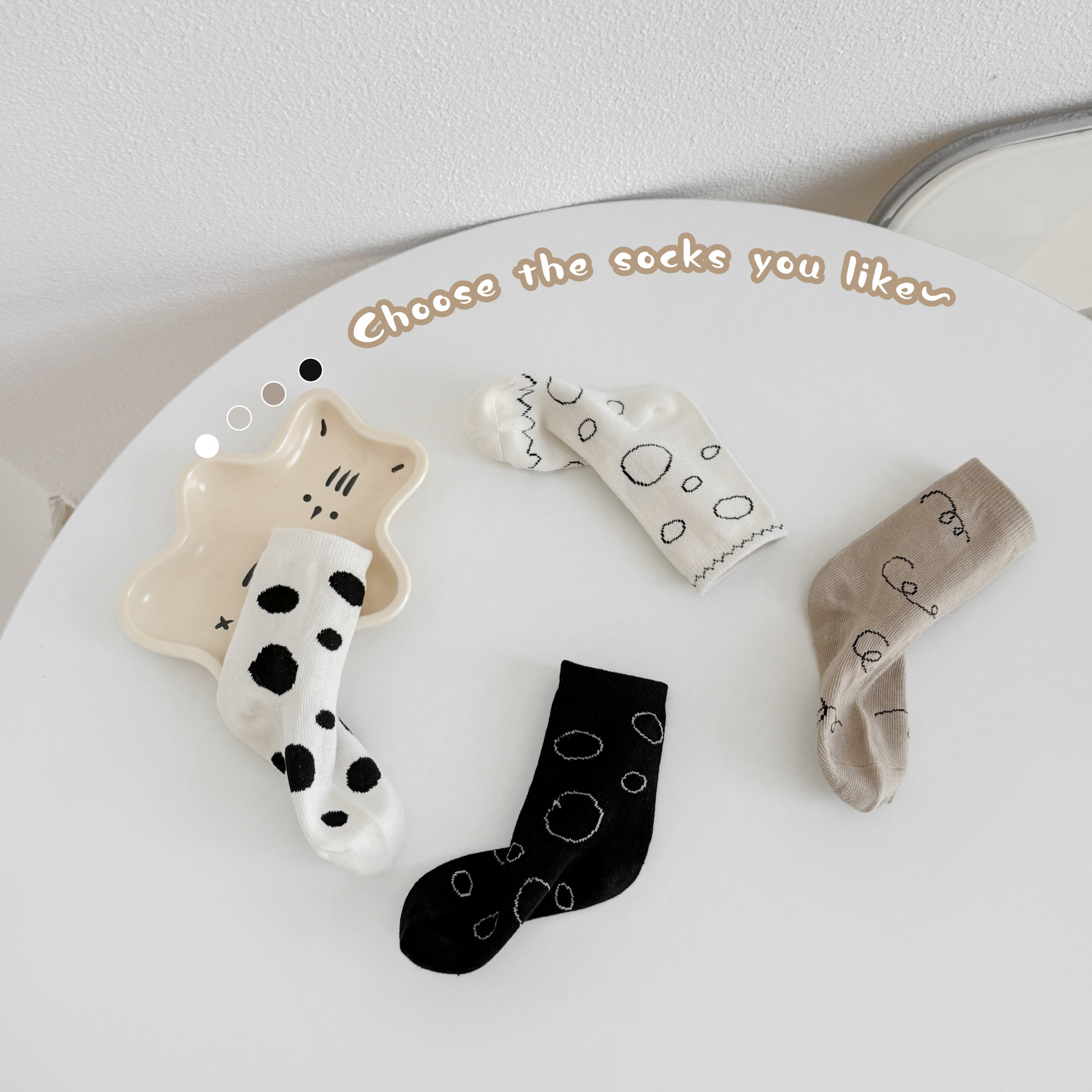 가을 겨울 어린이 양말 한국 스타일 소년 소녀 종아리 중간 양말 간단한 폴카 도트 인 트렌디 대학 스포츠면 양말 Sun Miss
