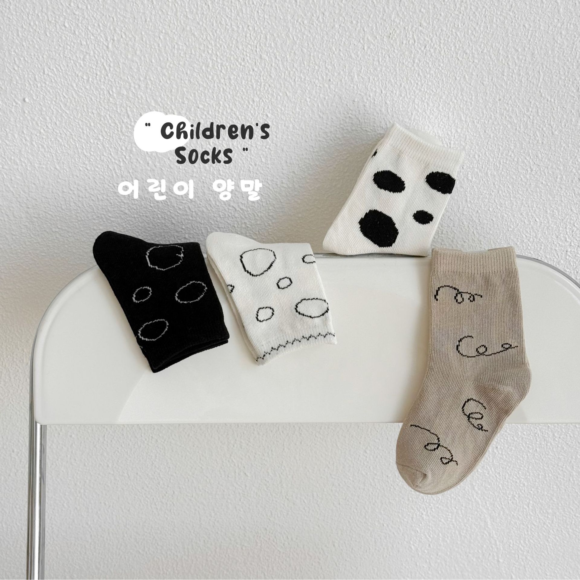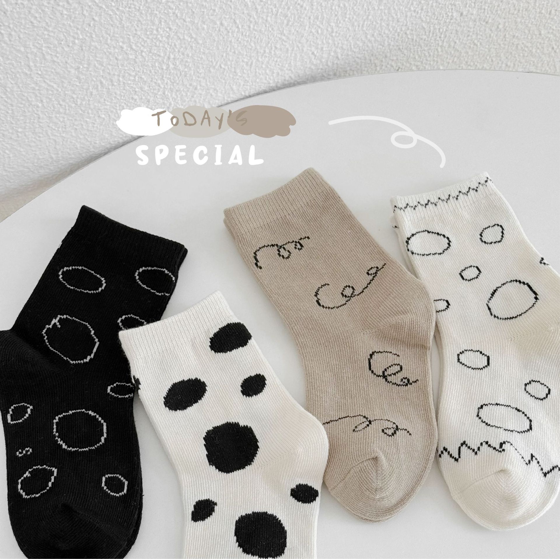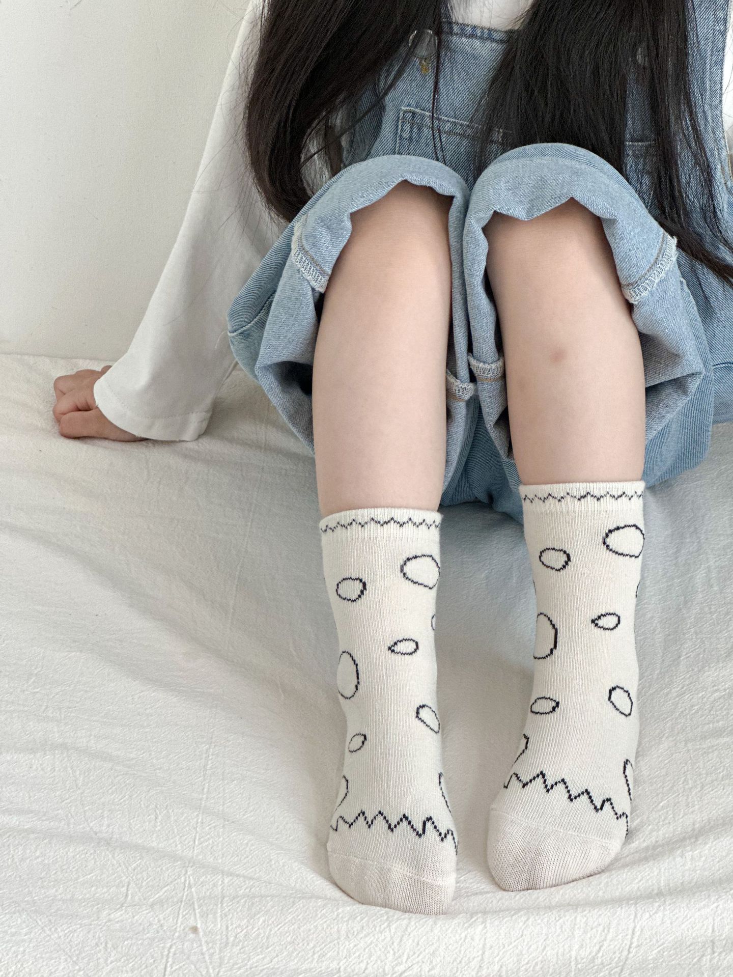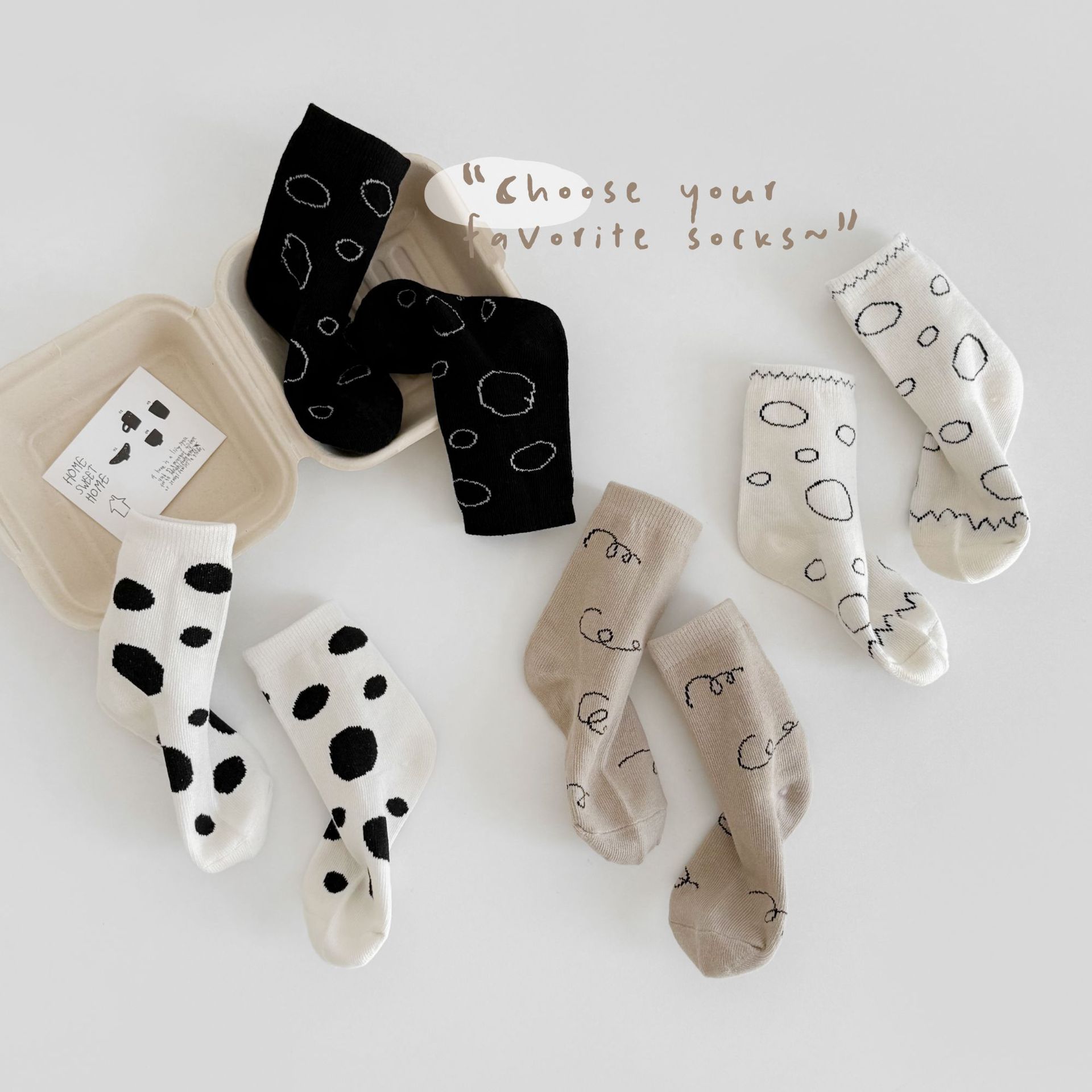 가을 겨울 어린이 양말 한국 스타일 소년 소녀 종아리 중간 양말 간단한 폴카 도트 인 트렌디 대학 스포츠면 양말 Sun Miss