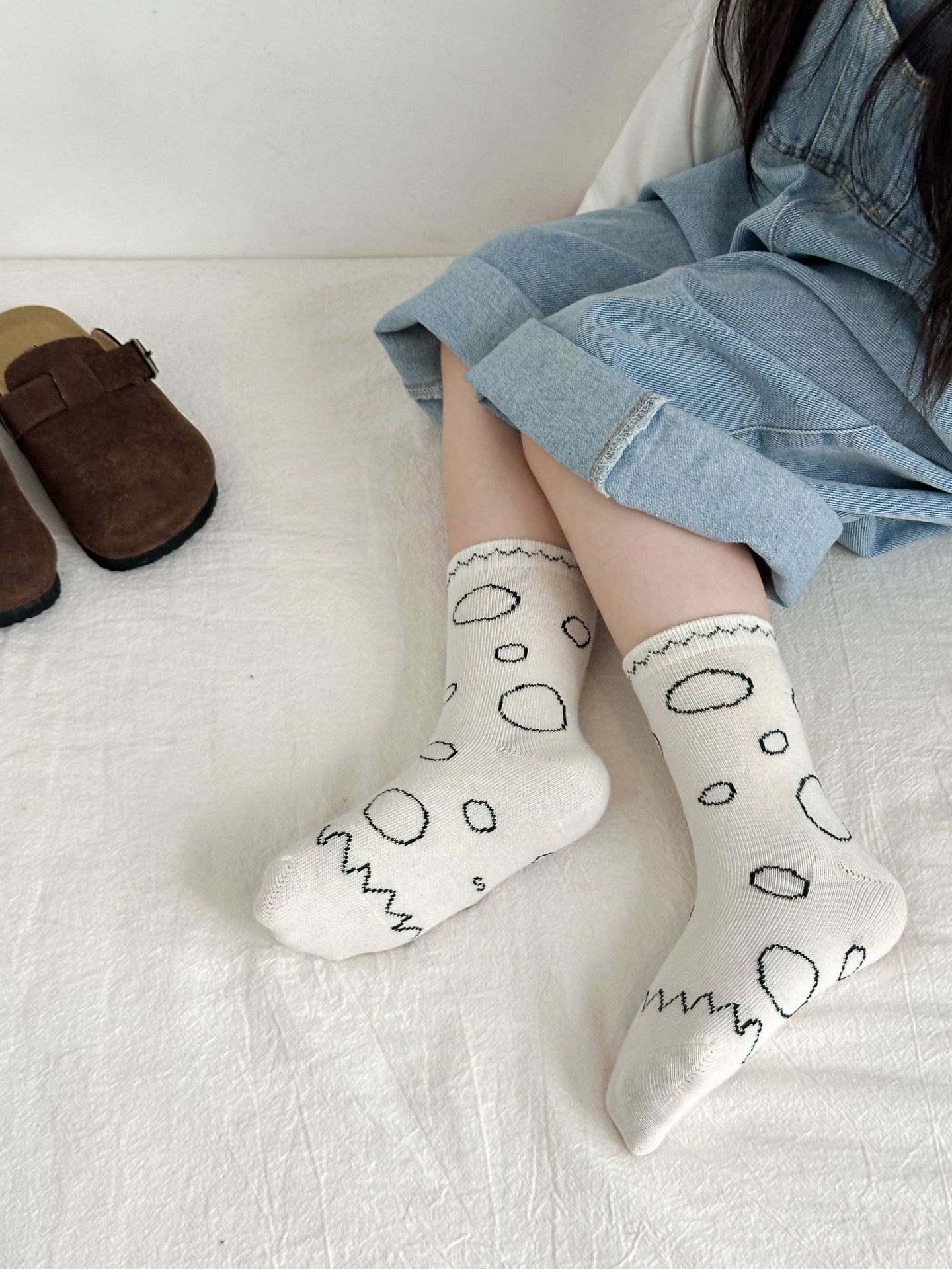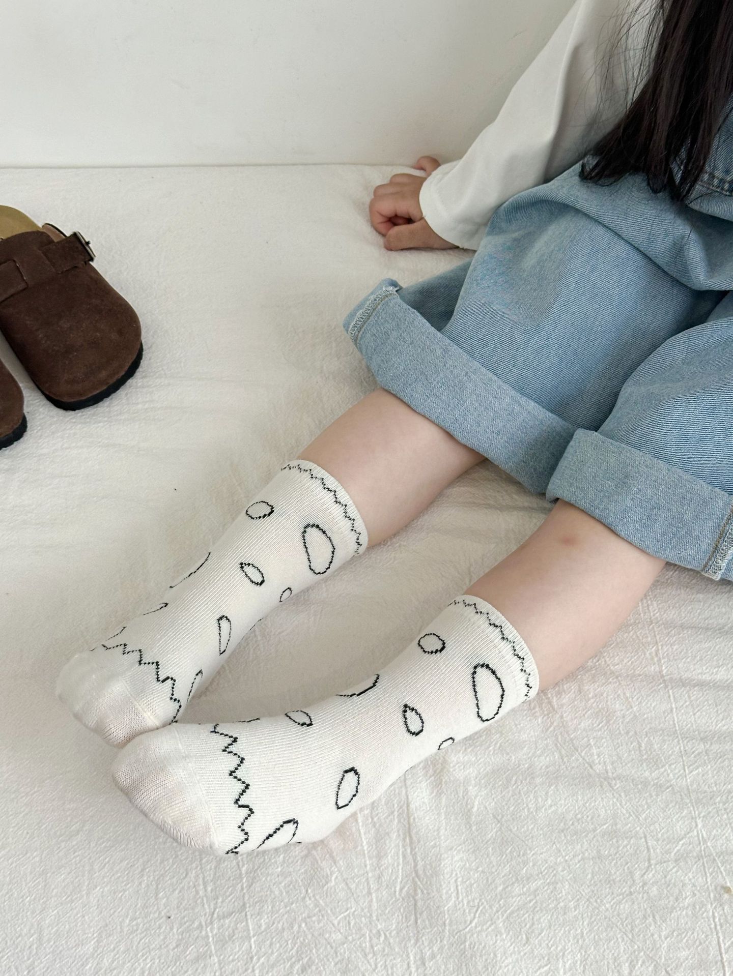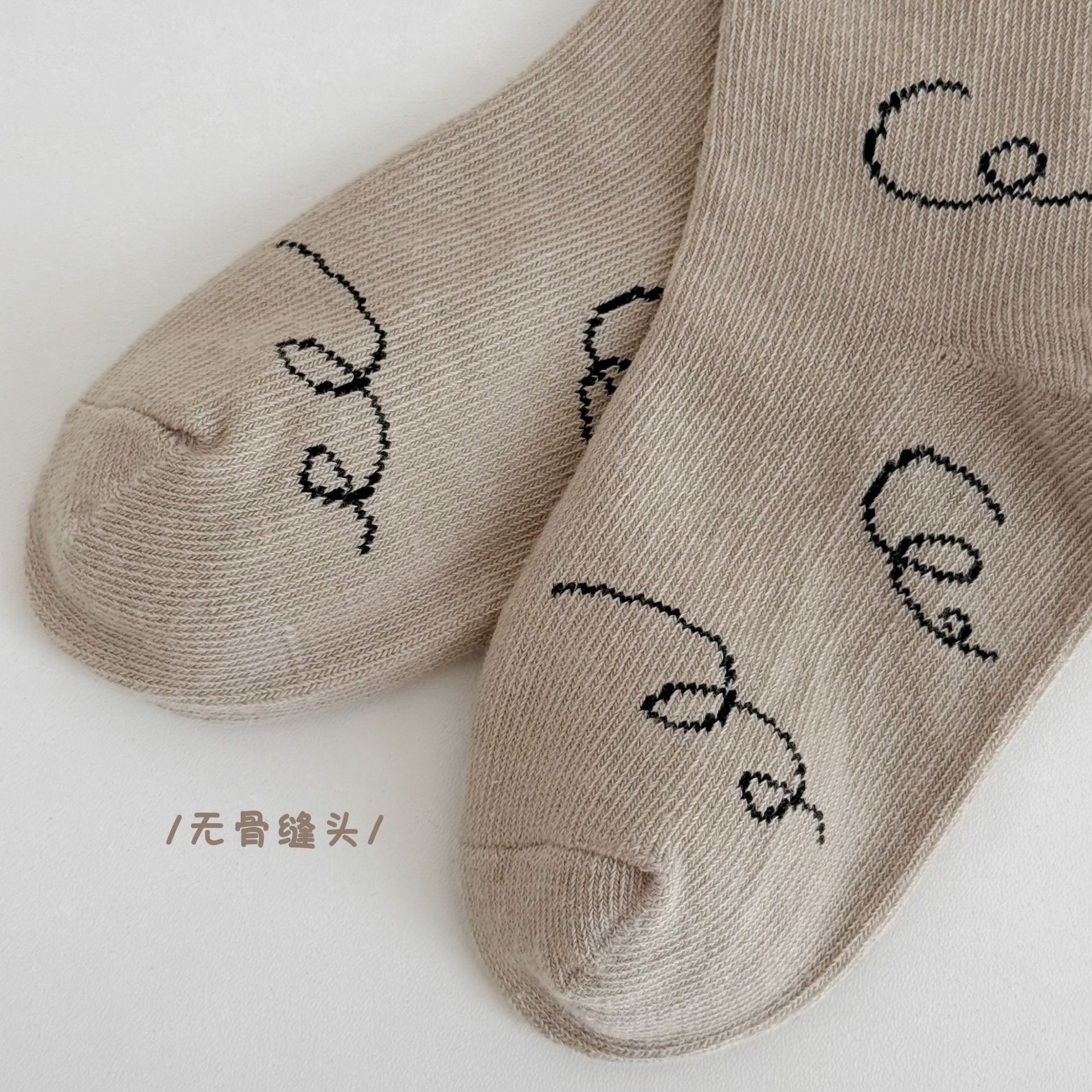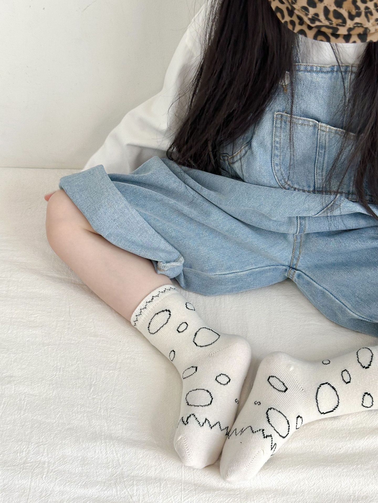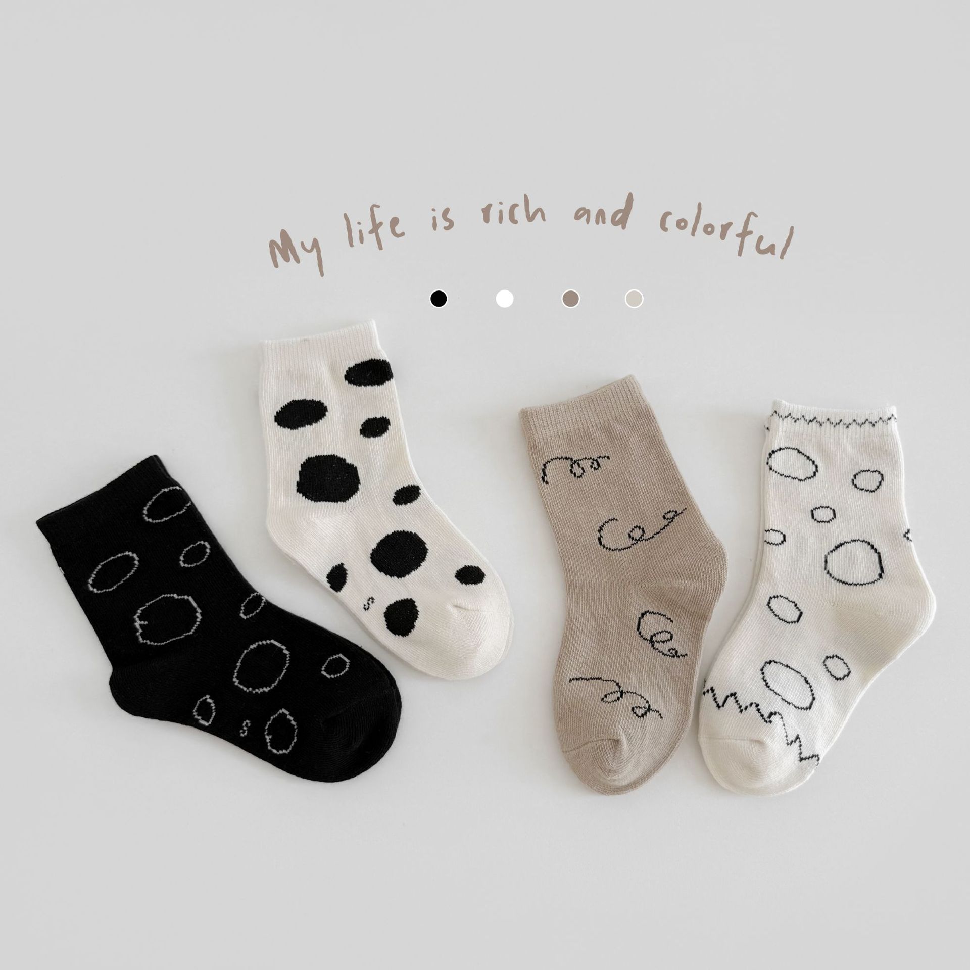 가을 겨울 어린이 양말 한국 스타일 소년 소녀 종아리 중간 양말 간단한 폴카 도트 인 트렌디 대학 스포츠면 양말 Sun Miss