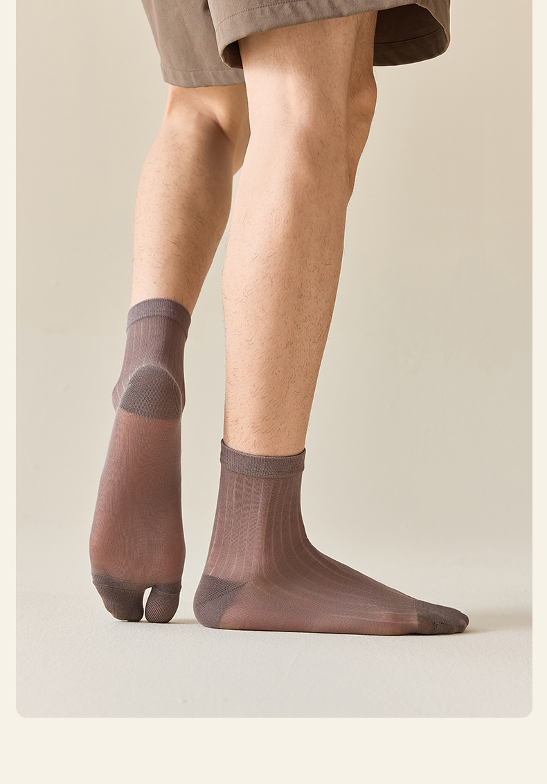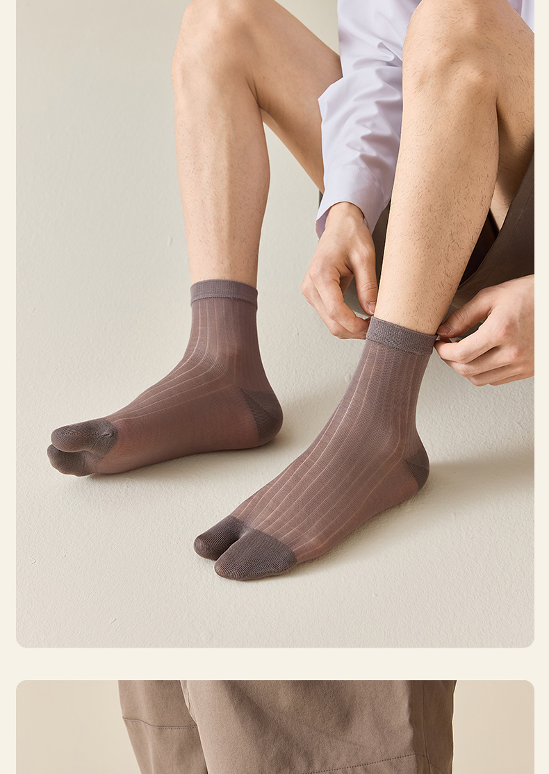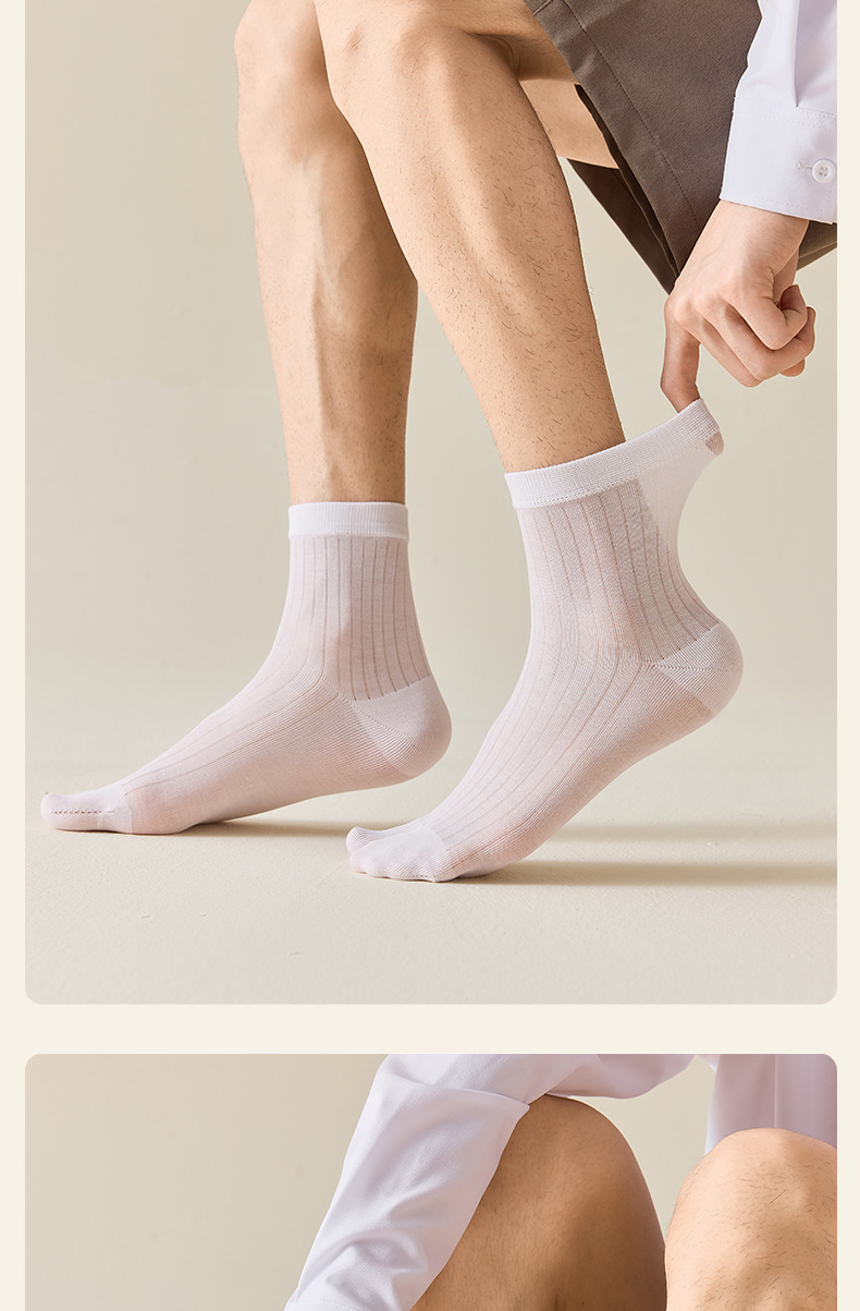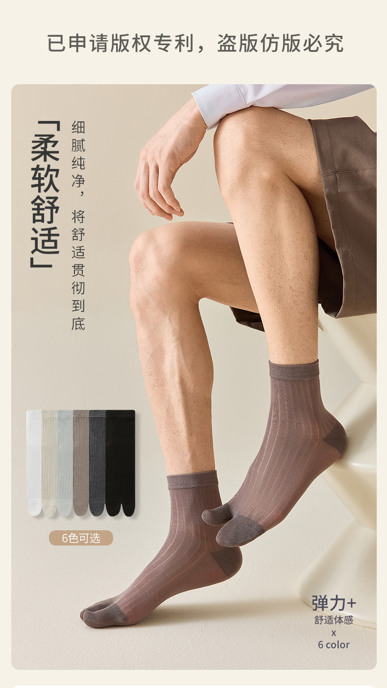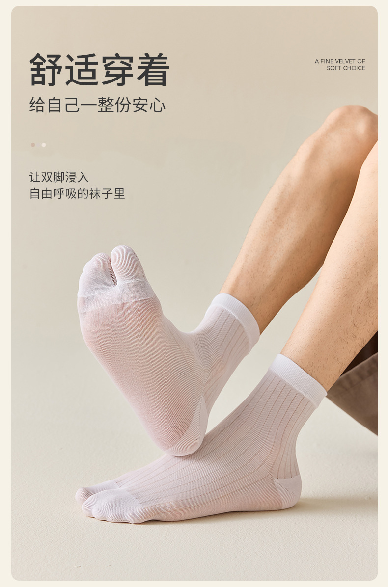흰색 남성 양말 여름 얇은 두 발가락 양말 중간 튜브 양말 남성용 뽕나무 실크 통기성과 편안한 세로 줄무늬 남성용 스플릿 발가락 양말