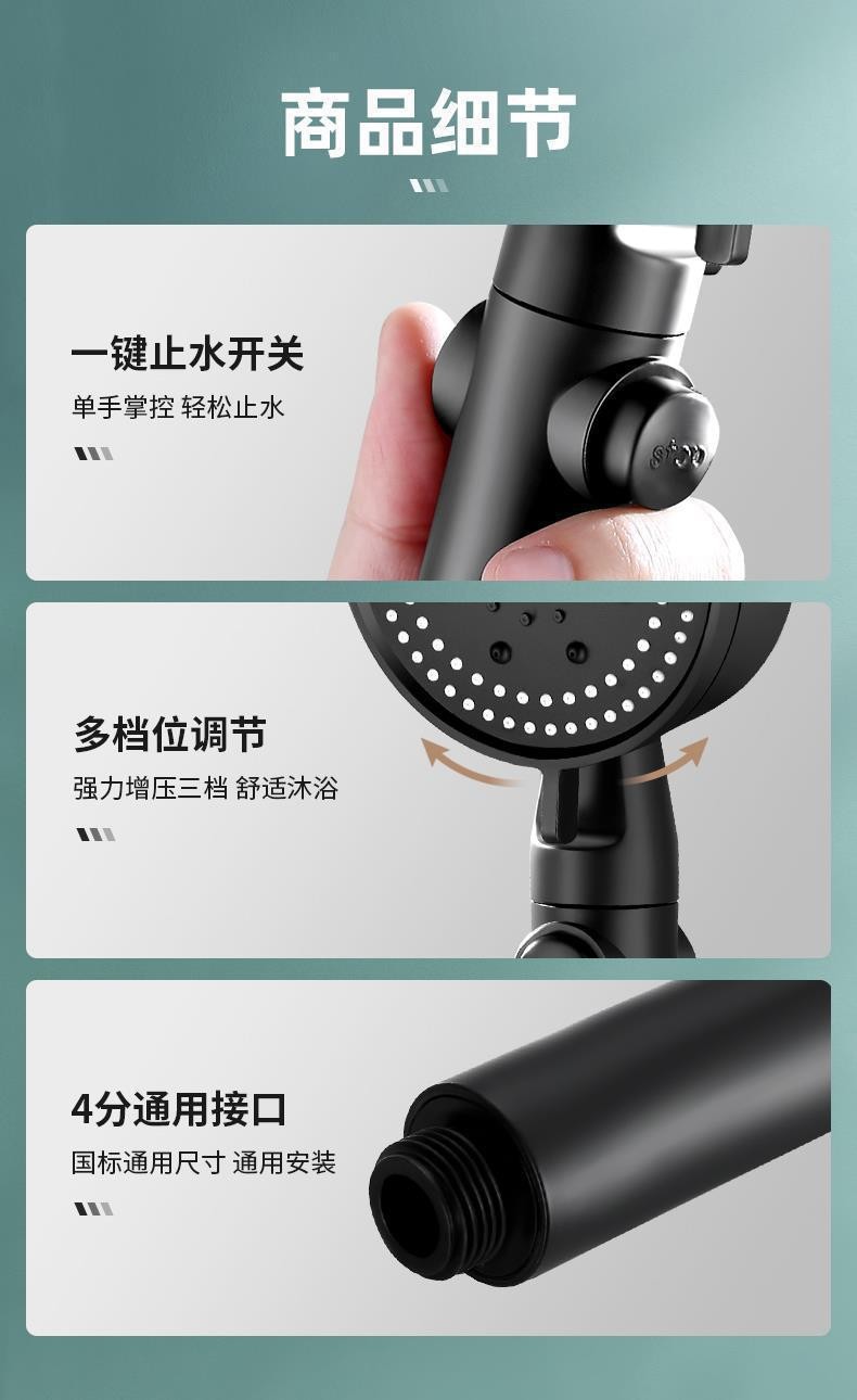 • 블랙 5단 기어 + 1.5m 호스 + 샤워 브래킷