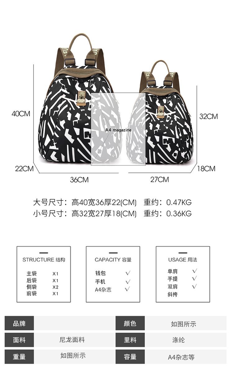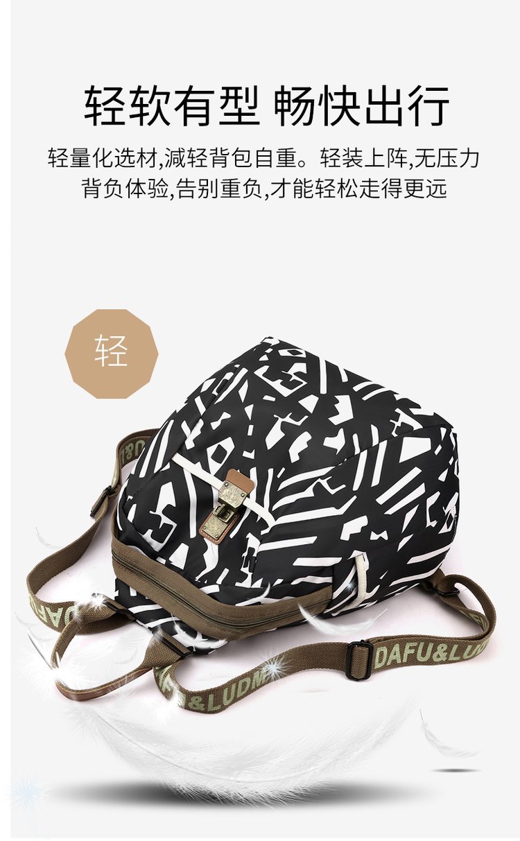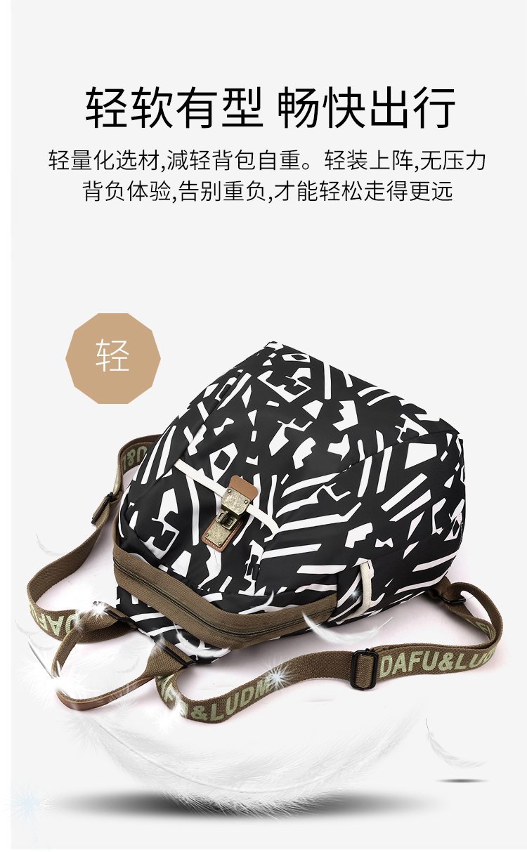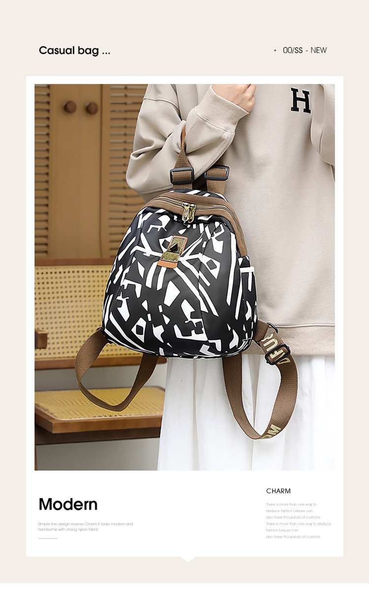 여성을위한 트렌디 한 브랜드 인쇄 경량 배낭 2024 새로운 패션 레저 여행 감각 숙녀 배낭 여행 가방