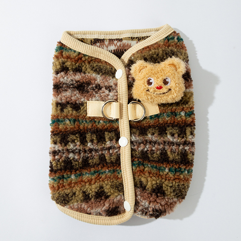 새로운 가을 겨울 강아지 옷 입체 곰 모양 가디건 플리스 조끼 고양이 조끼 중소형 테디 애완동물 옷