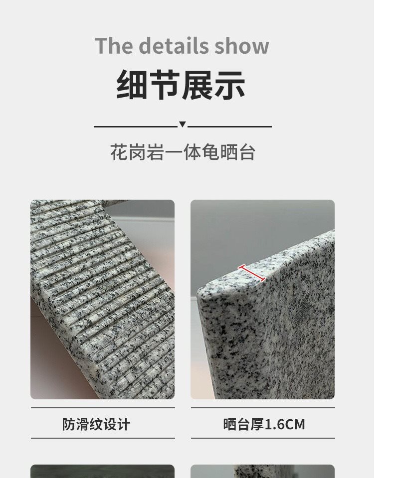 花岗岩晒背台乌龟爬梯躲避水陆龟缸造景巴西草龟水族箱爬坡休息台