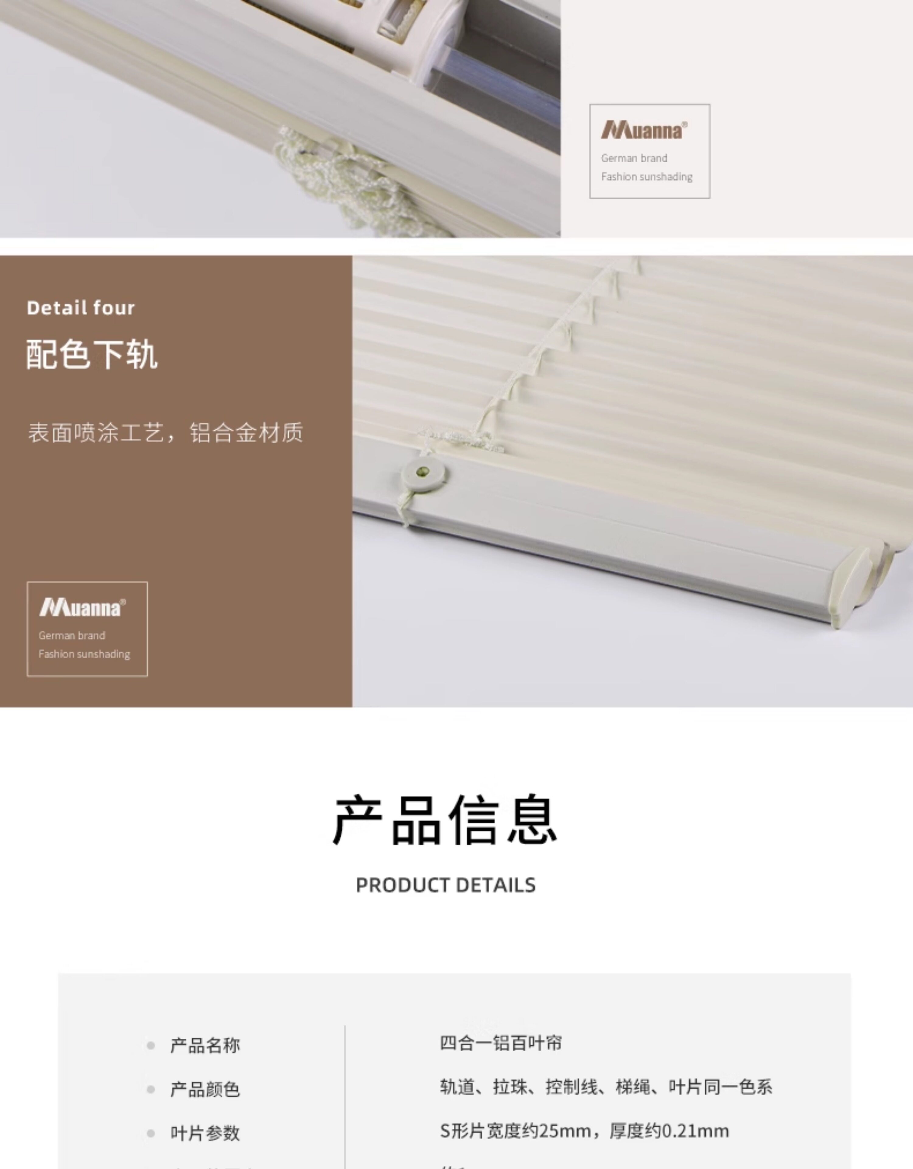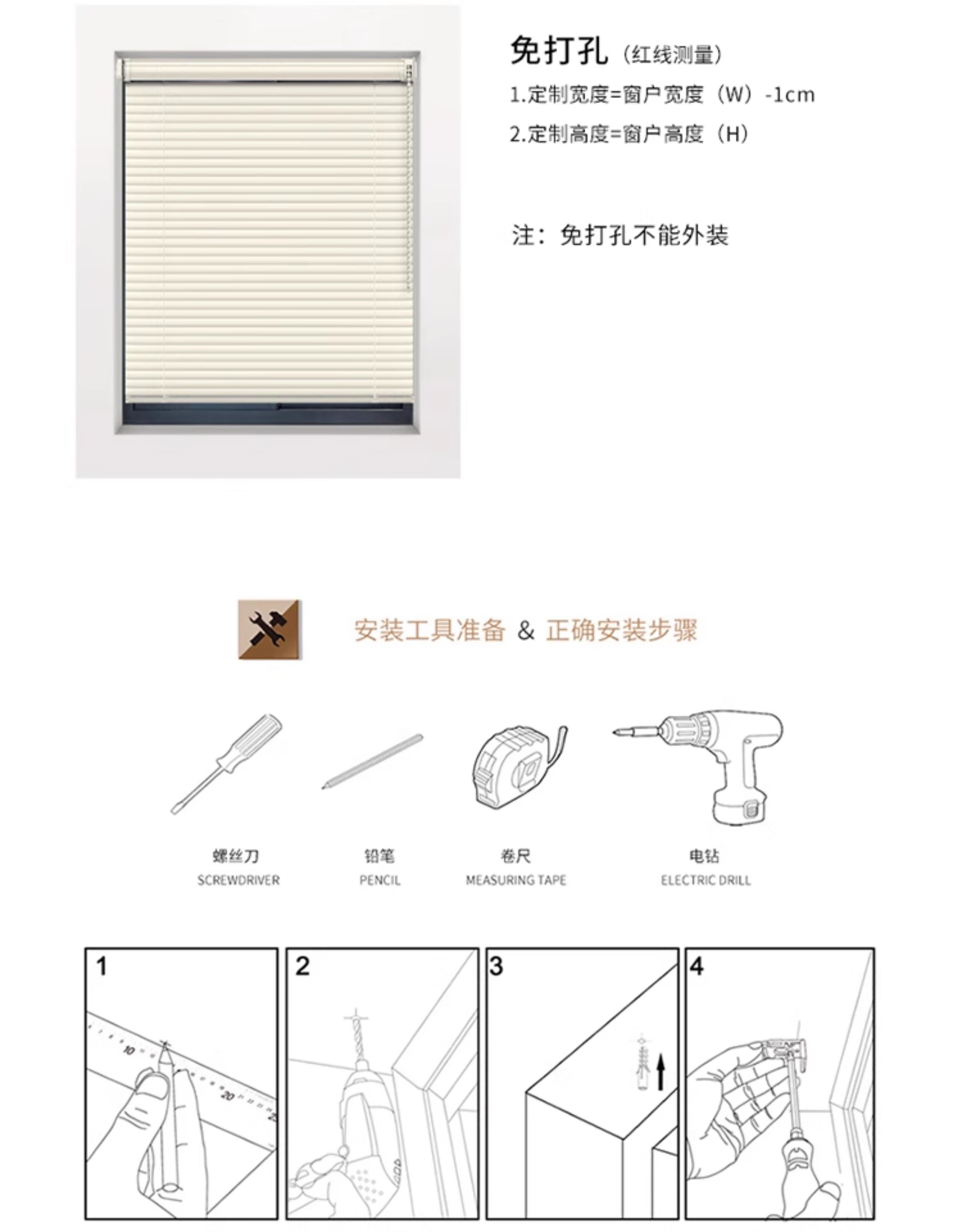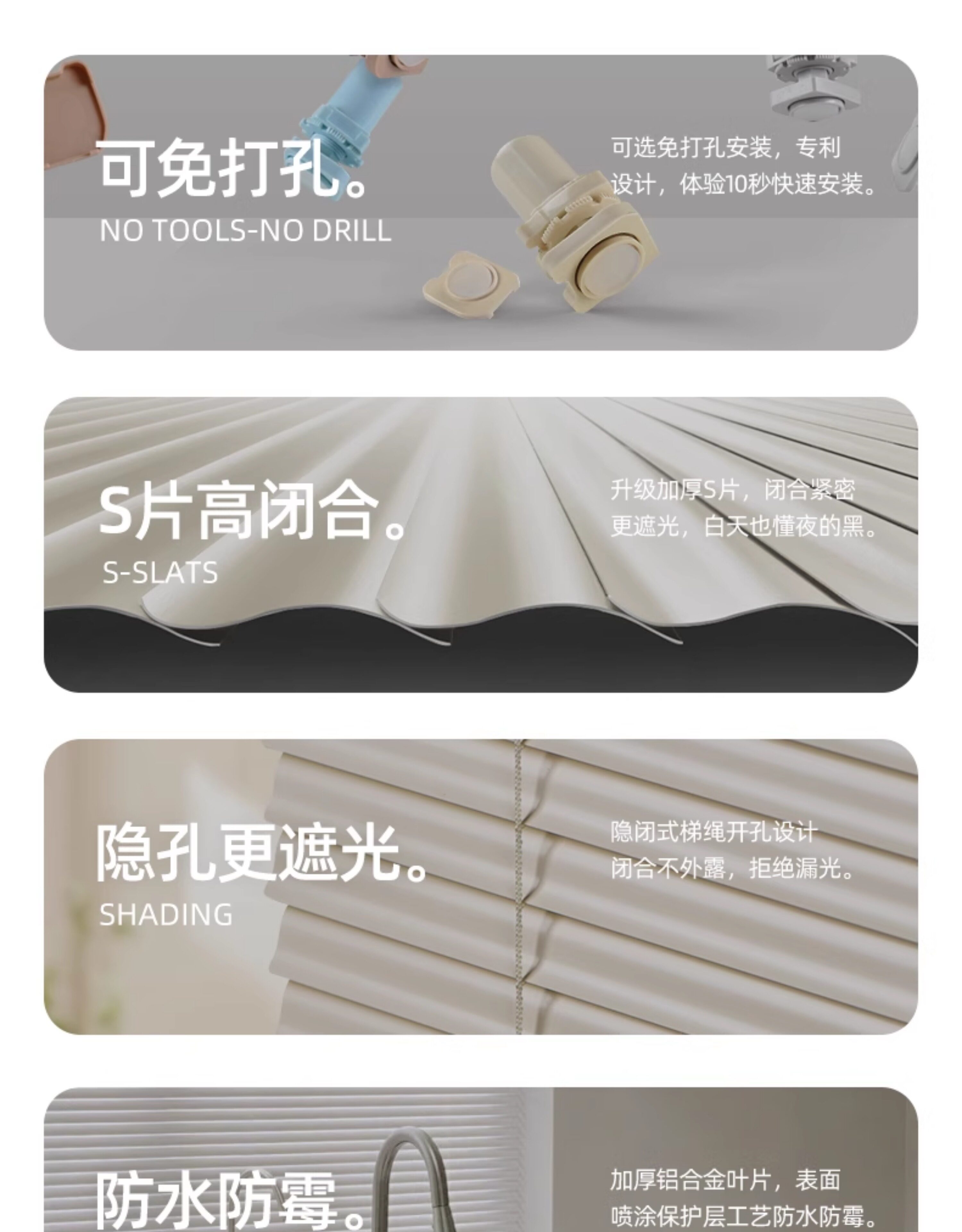 무아나 크림 S자형 블라인드 펀치 없는 욕실 욕실 방수 주방 알루미늄 합금 블라인드스토어 가기