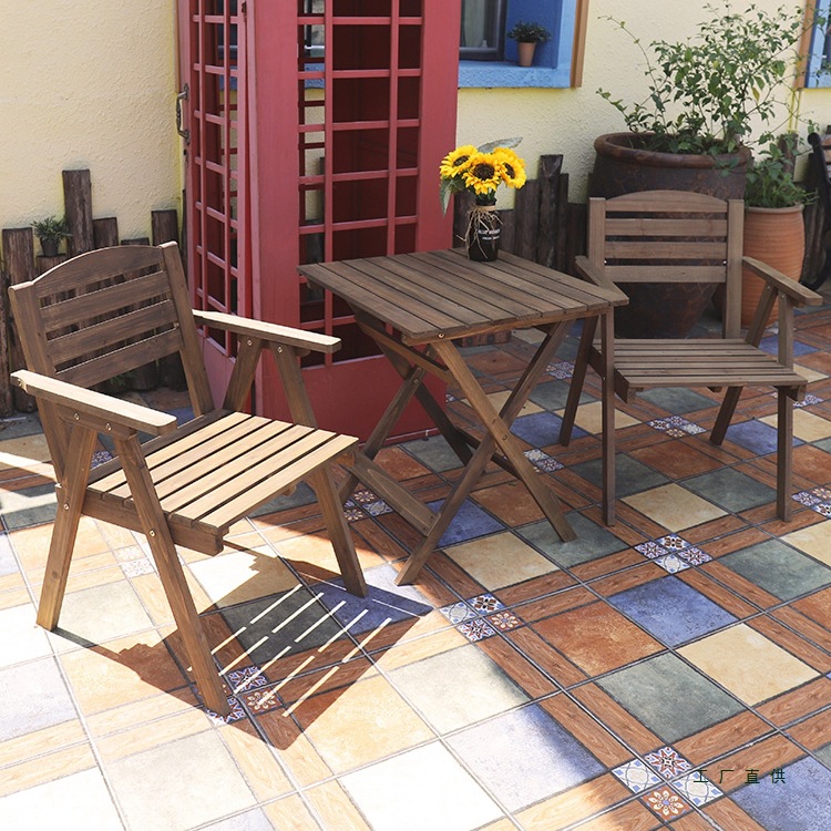 도매 단단한 나무 접이식 테이블 등받이 의자 조합 휴대용 홈 야외 발코니 간단한 작은 커피 테이블 정사각형 및 원형 식탁스토어 가기