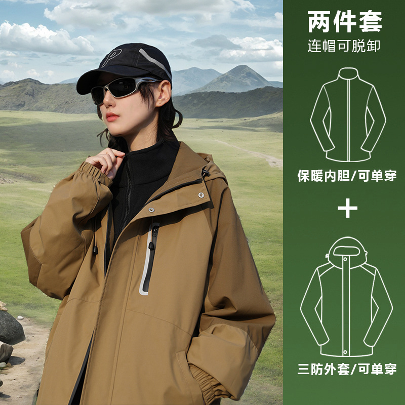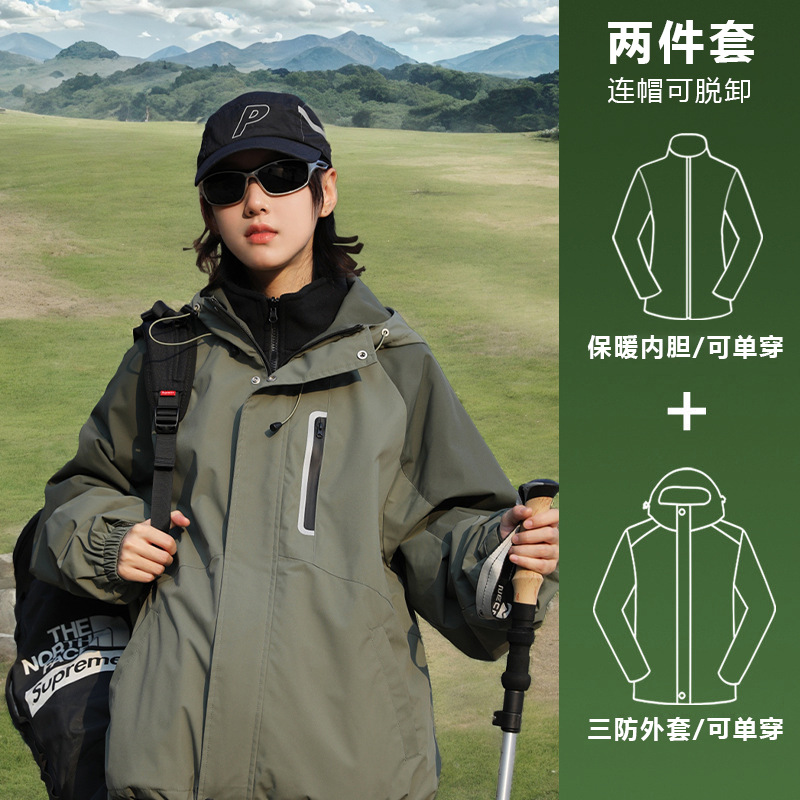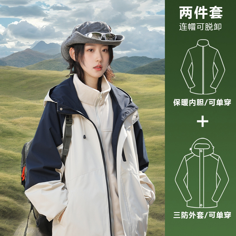 户外三防冲锋衣男女款春秋季新款三合一防风防水登山服夹克外套男