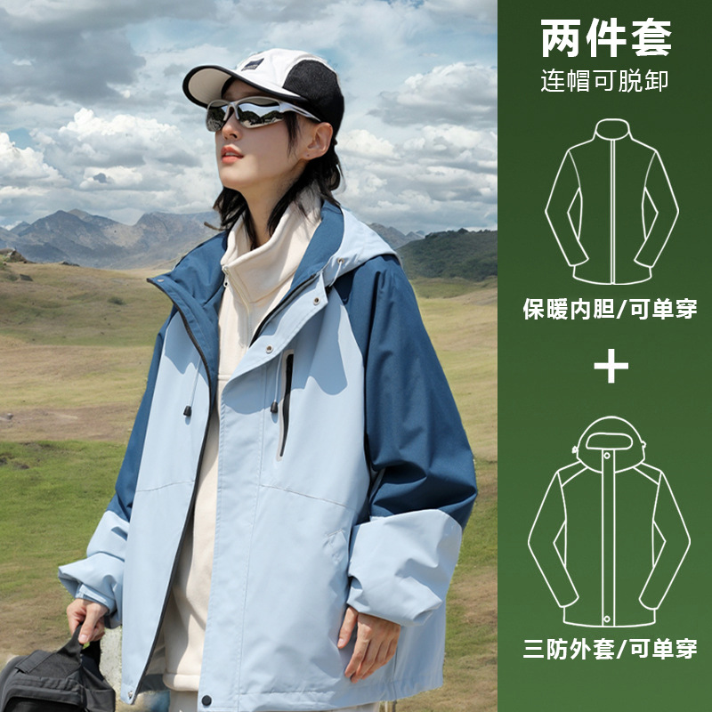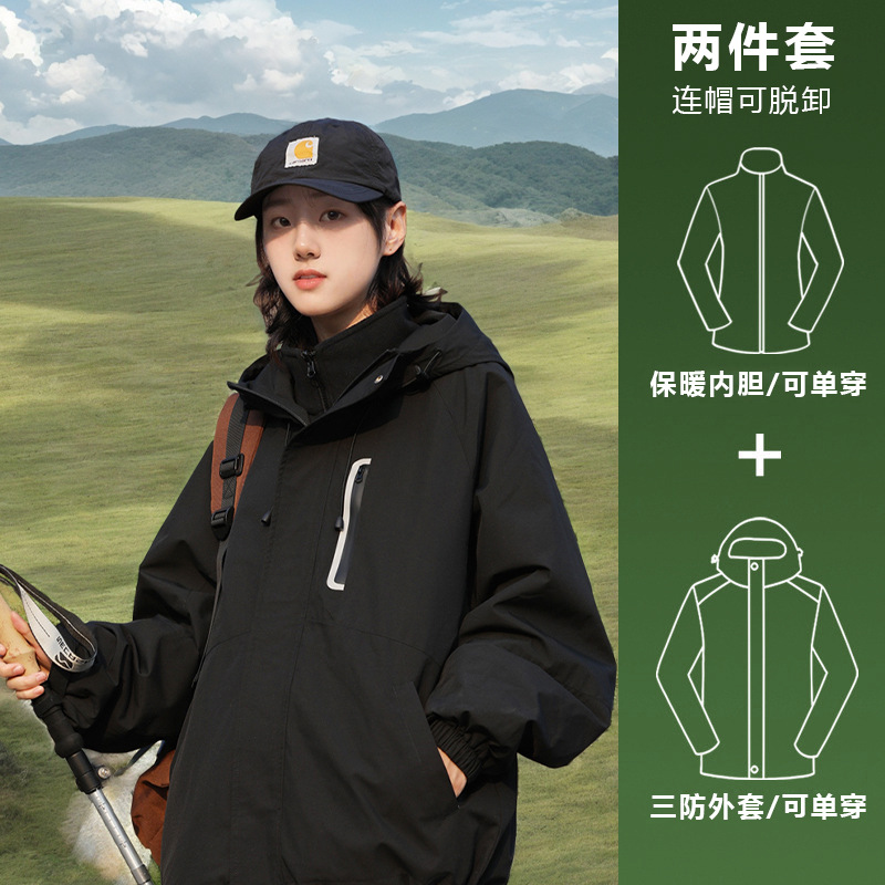 户外三防冲锋衣男女款春秋季新款三合一防风防水登山服夹克外套男스토어 가기