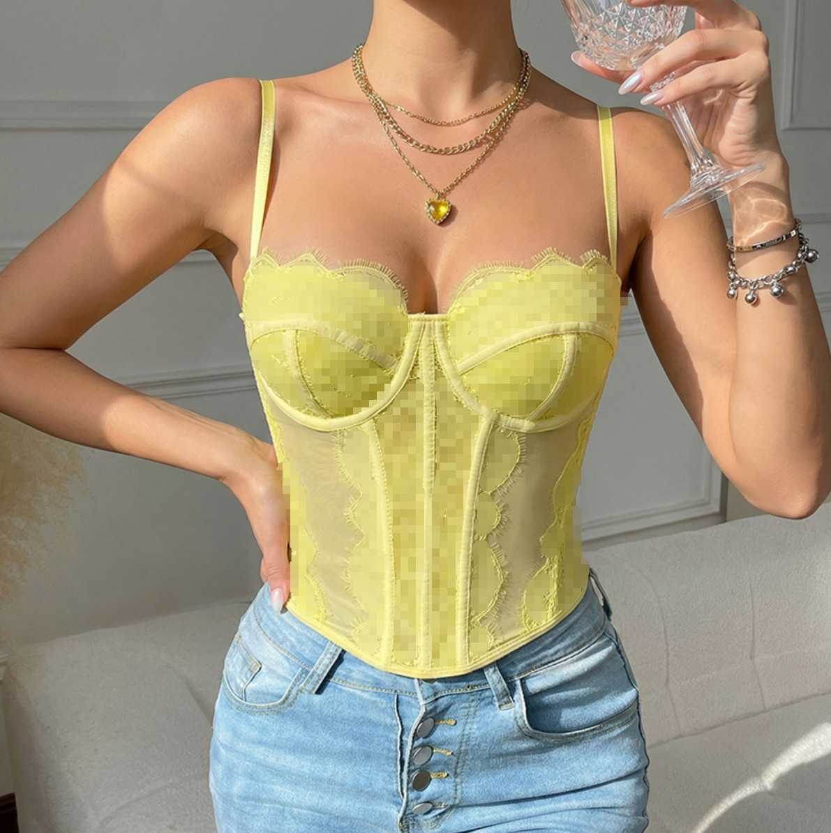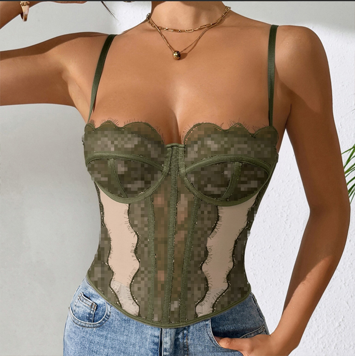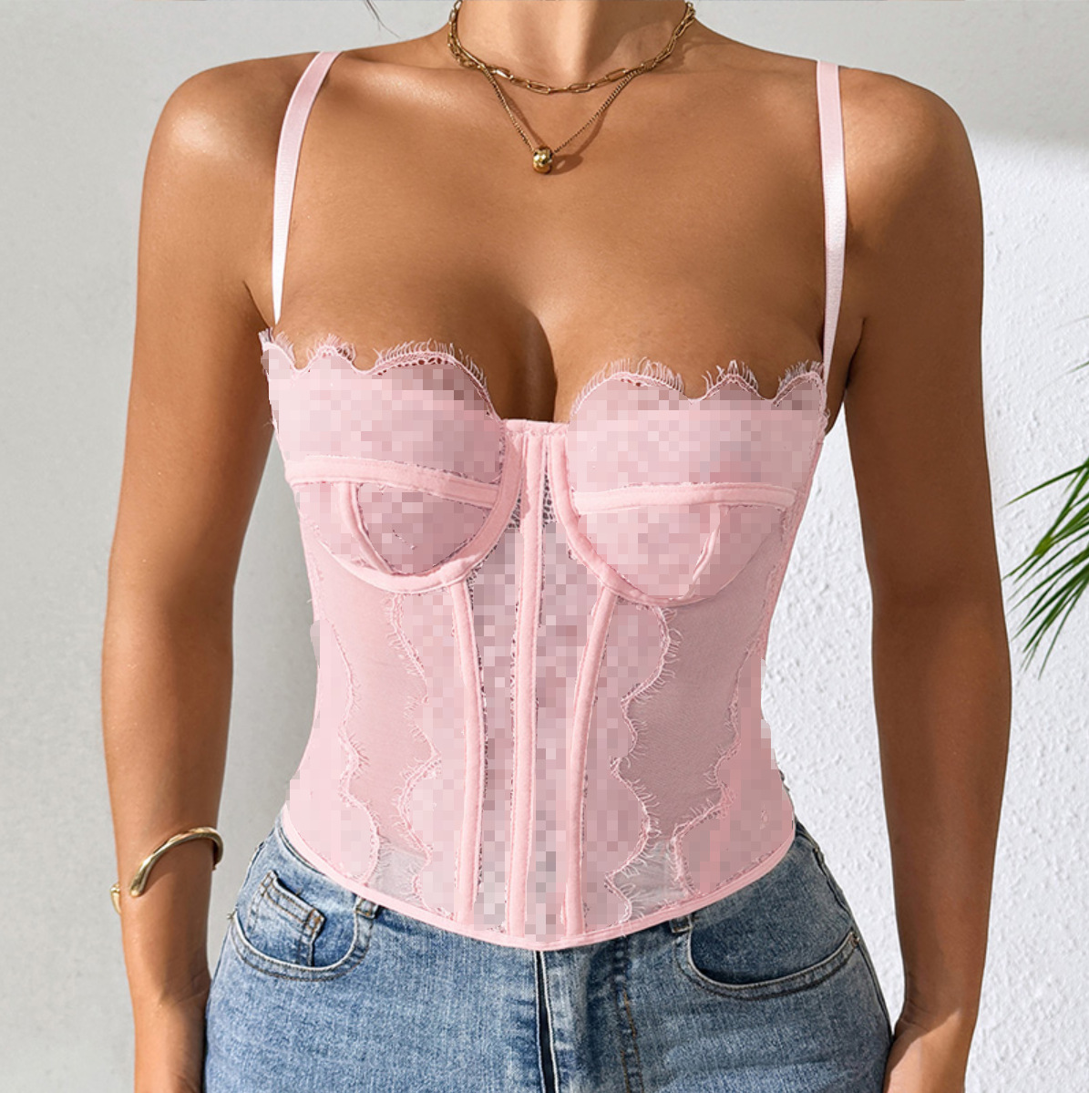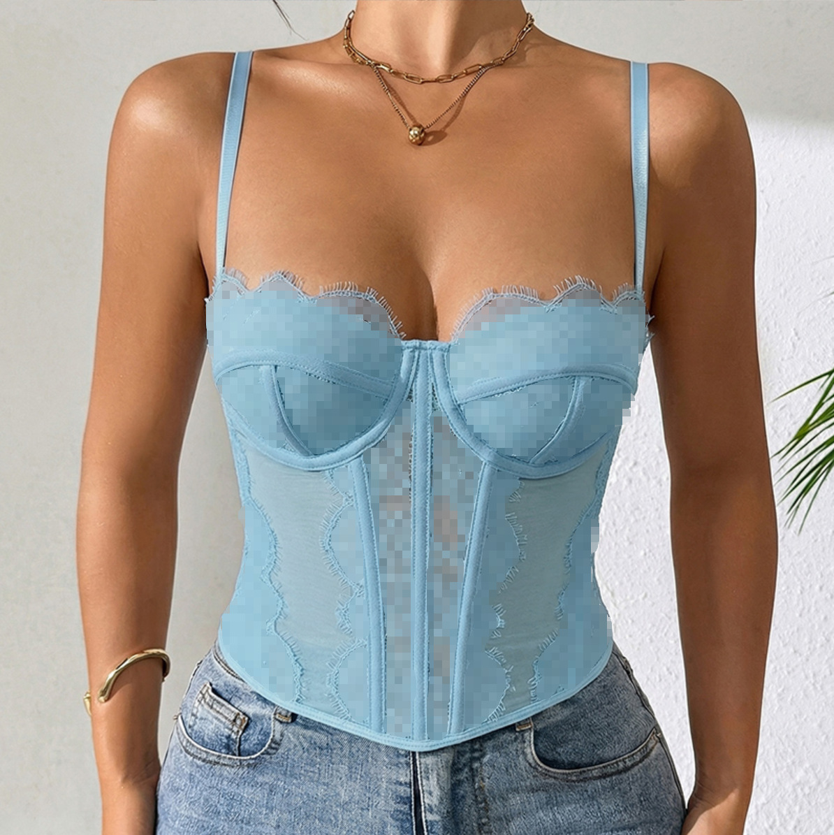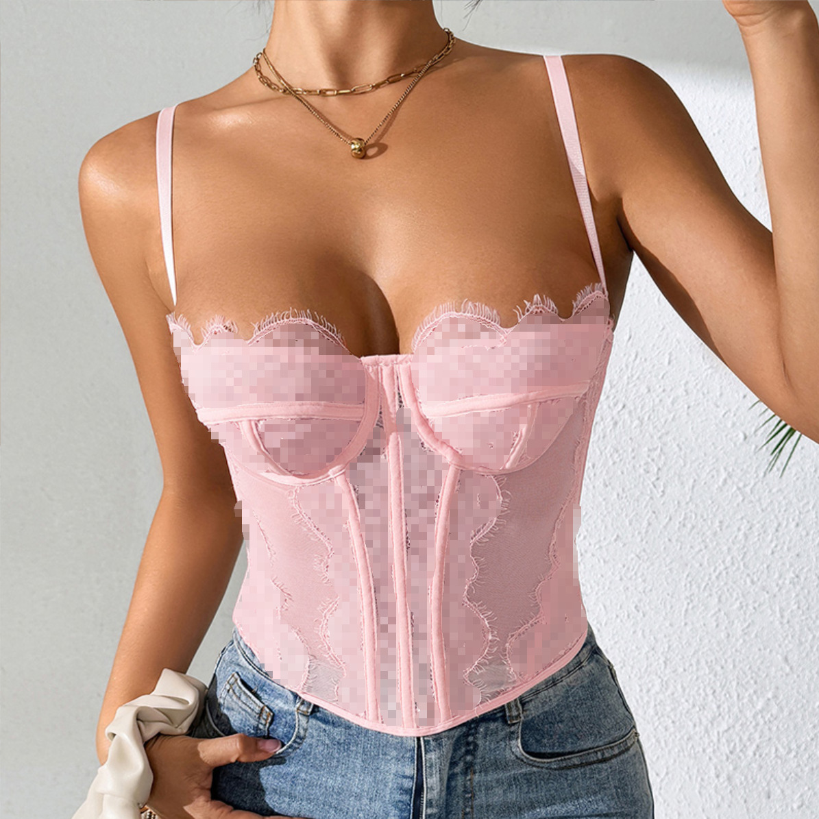 섹시한 푸쉬업 슬림핏 피쉬본 브라, 속눈썹 레이스 시스루 퓨어 러블리 캐미솔 여성용 아우터웨어스토어 가기