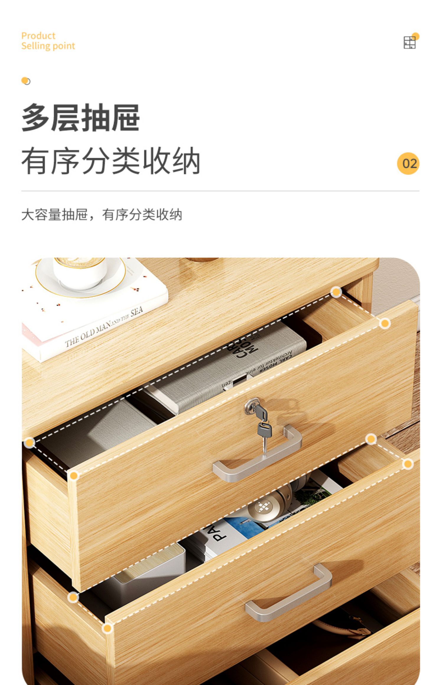 • ✧◈【1단 서랍형】 북미산 블랙 월넛 색상 40*34*59cm▲잠금 풀리✧◈