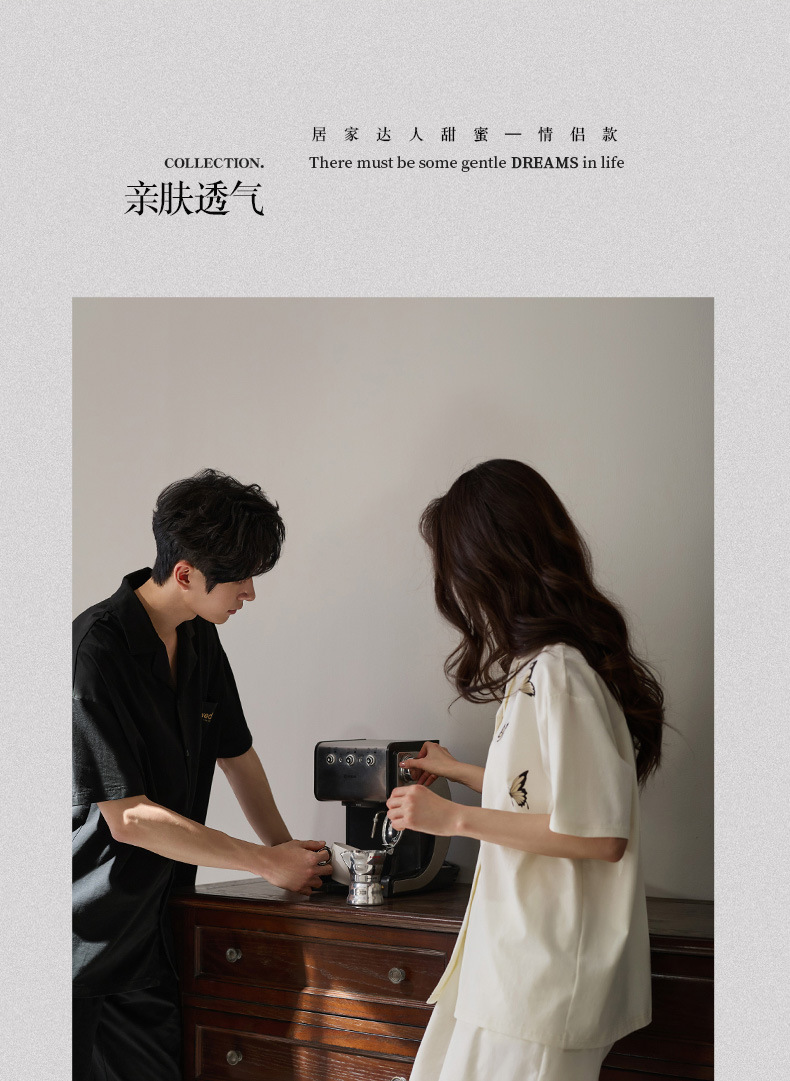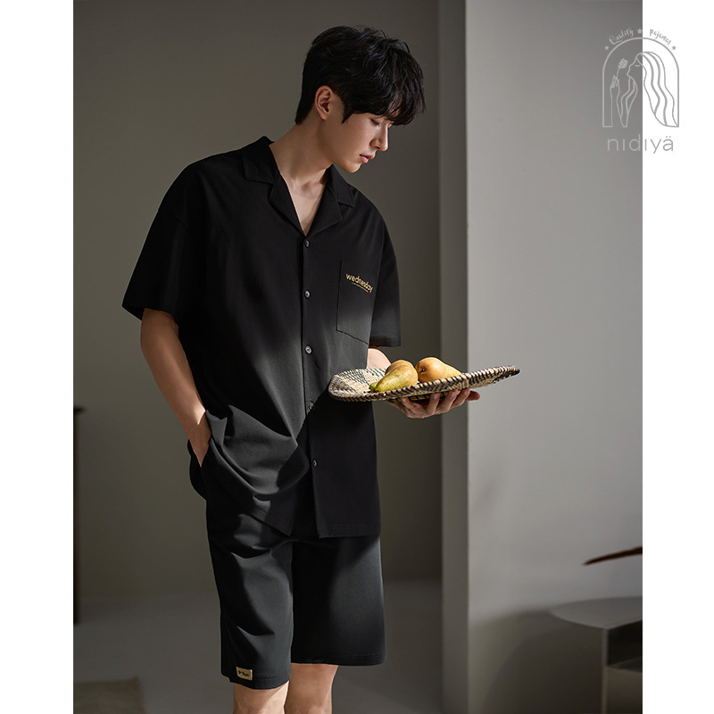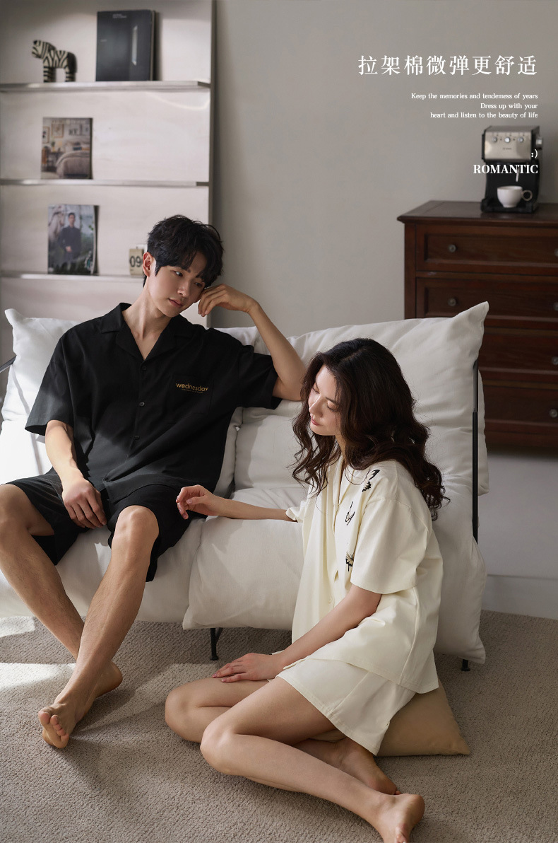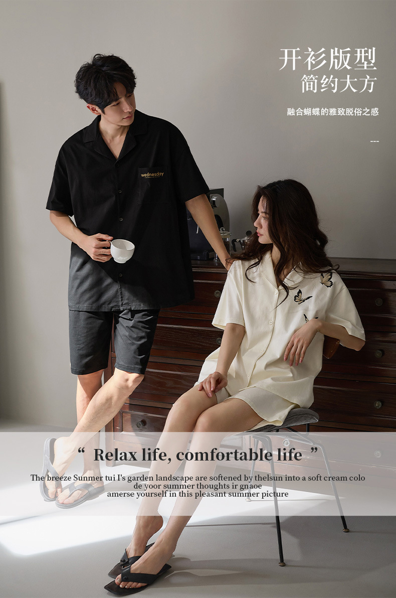 Nidiya 커플 잠옷 여성 여름 시원한 부드러운 면 반팔 반바지 남성 간단한 카디건 홈웨어 세트