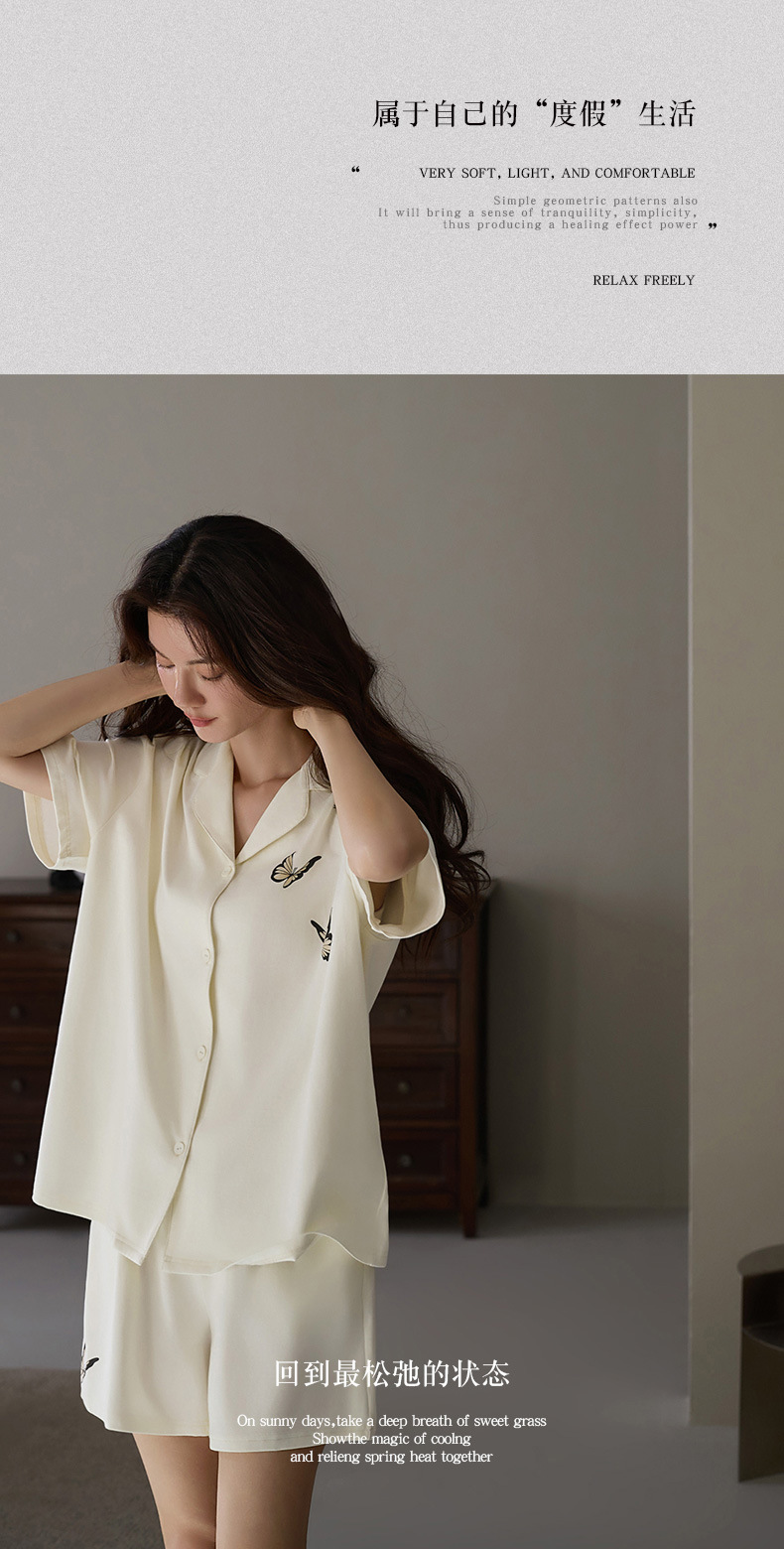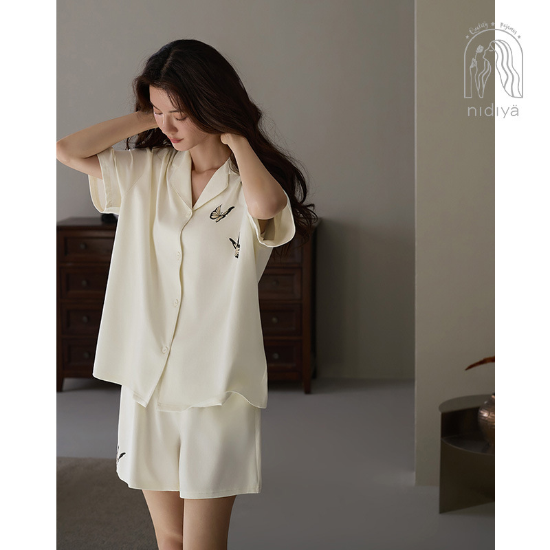 Nidiya 커플 잠옷 여성 여름 시원한 부드러운 면 반팔 반바지 남성 간단한 카디건 홈웨어 세트스토어 가기