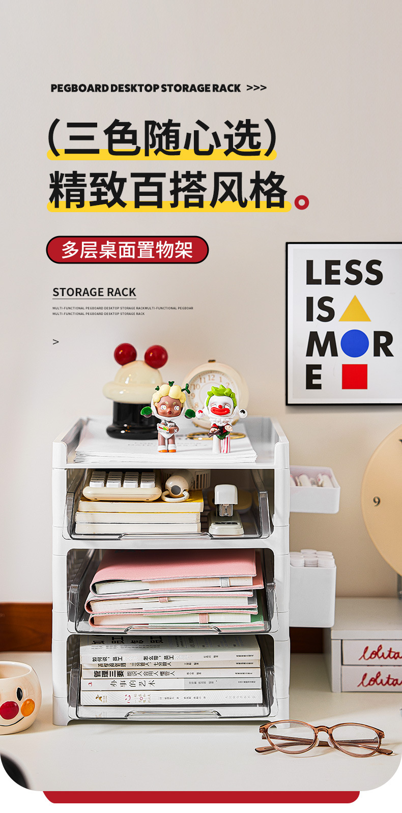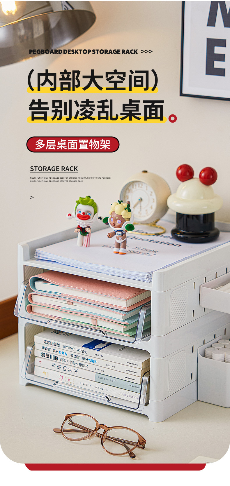 데스크탑 파일 랙 다층 스토리지 랙 서랍 형 계층형 데스크 스토리지 랙 사무실 도서 정보 스토리지 박스