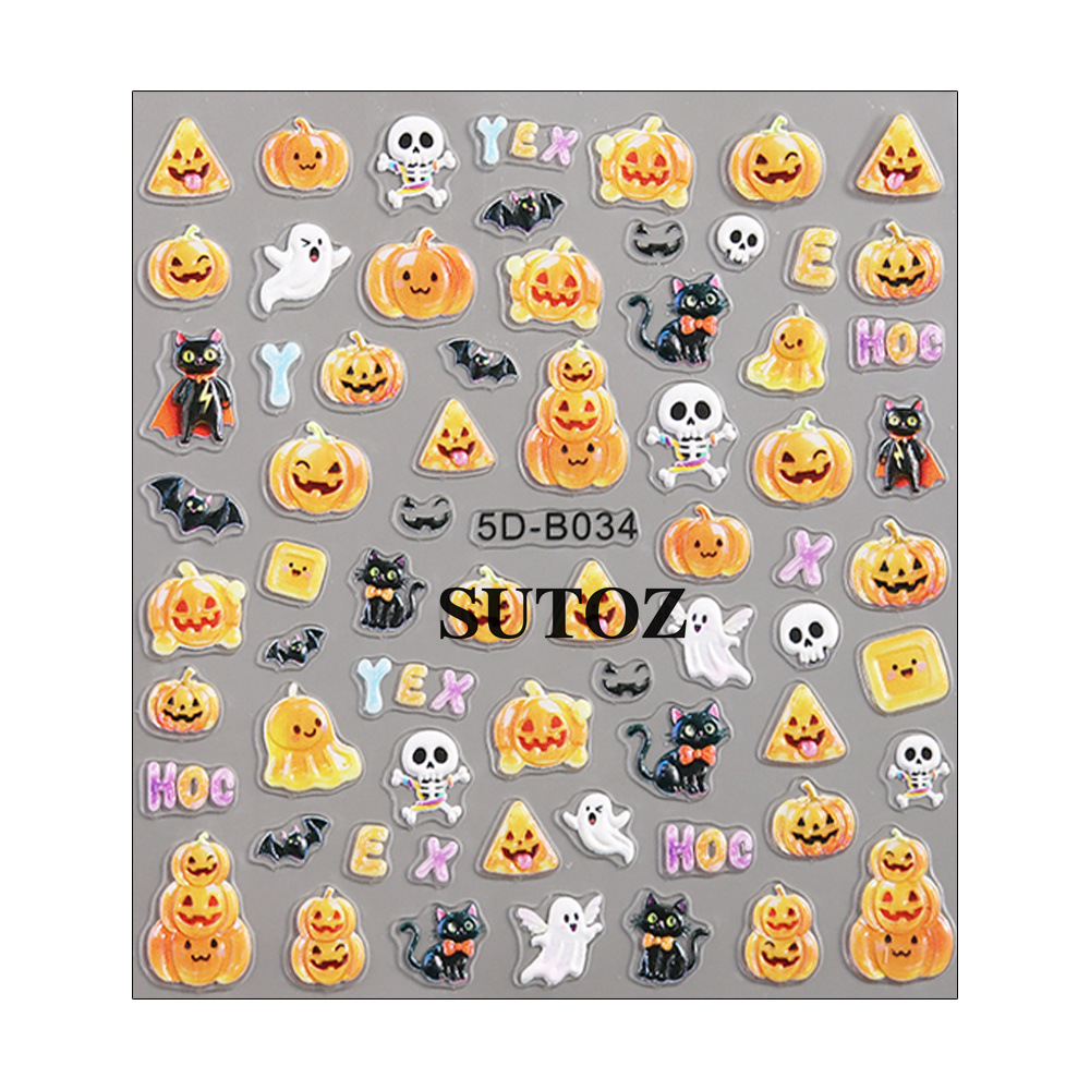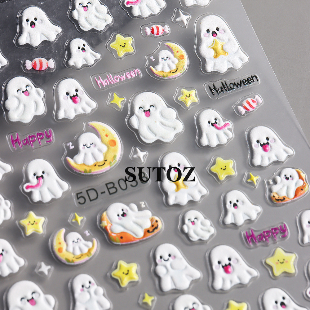 국경 간 새로운 할로윈 네일 스티커 만화 귀여운 유령 거미 호박 랜턴 3D 네일 아트 스티커스토어 가기
