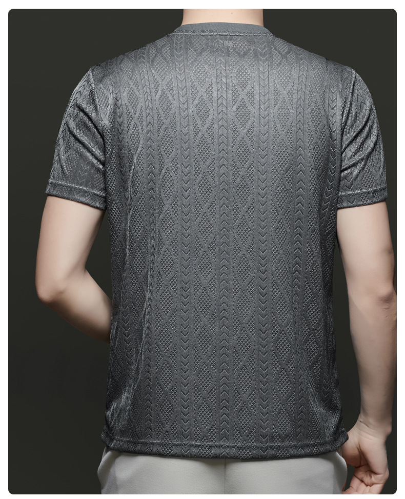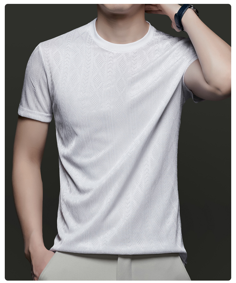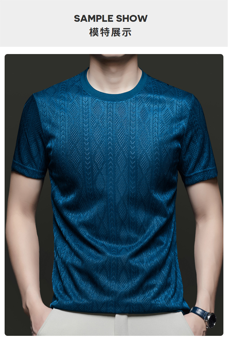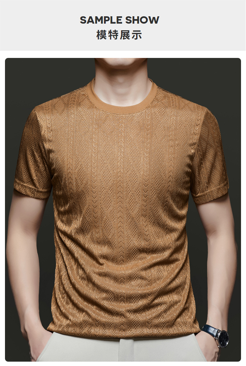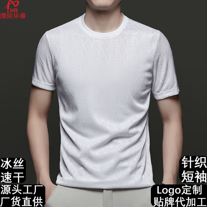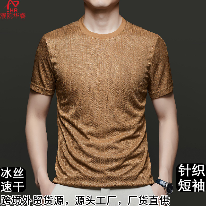 아이스 실크 자카드 여름 남성 반팔 스웨터, 가볍고 통기성이 뛰어난 남성용 바닥 셔츠, 남성용 트렌디한 대외 무역 반팔 티셔츠