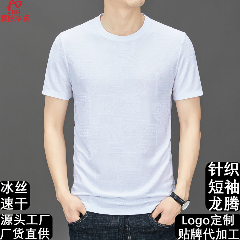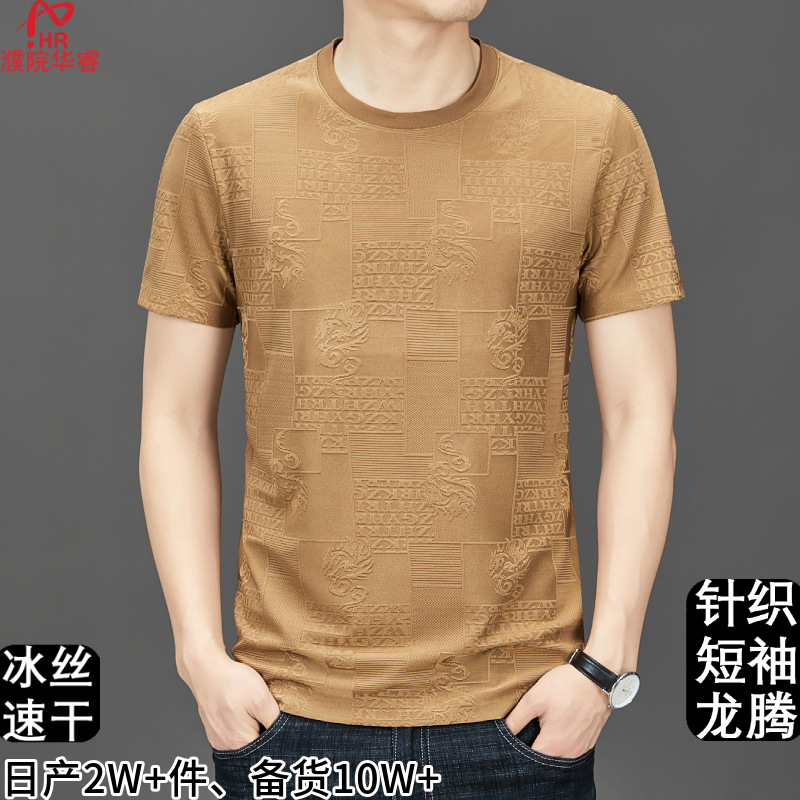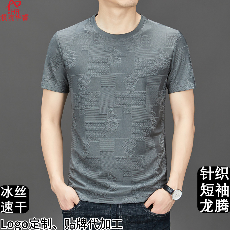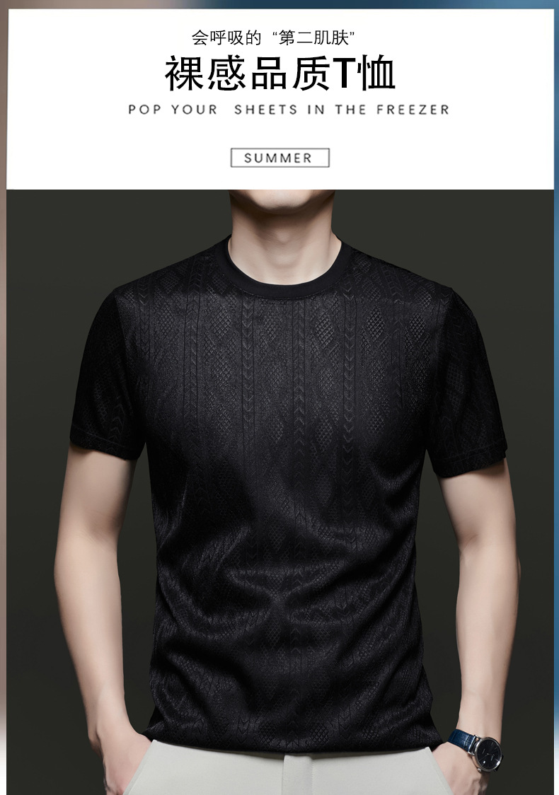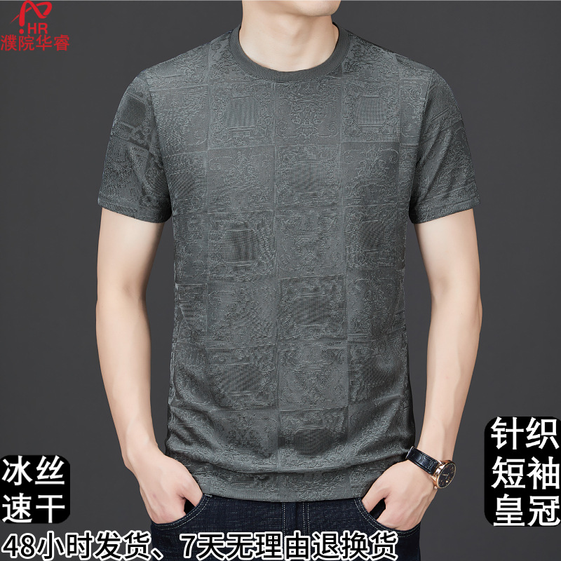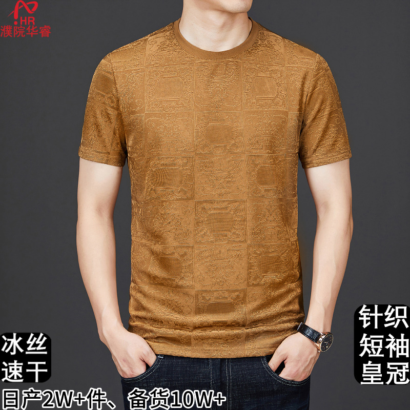 아이스 실크 자카드 여름 남성 반팔 스웨터, 가볍고 통기성이 뛰어난 남성용 바닥 셔츠, 남성용 트렌디한 대외 무역 반팔 티셔츠스토어 가기
