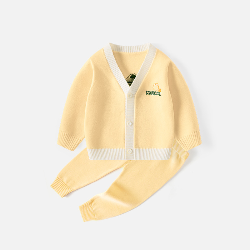 아기 자수 카디건 정장 스웨터 새로운 만화 아기 소년 v 넥 코튼 거즈 투피스 세트 아기 카테고리 A 스웨터스토어 가기