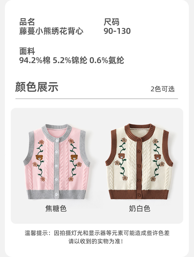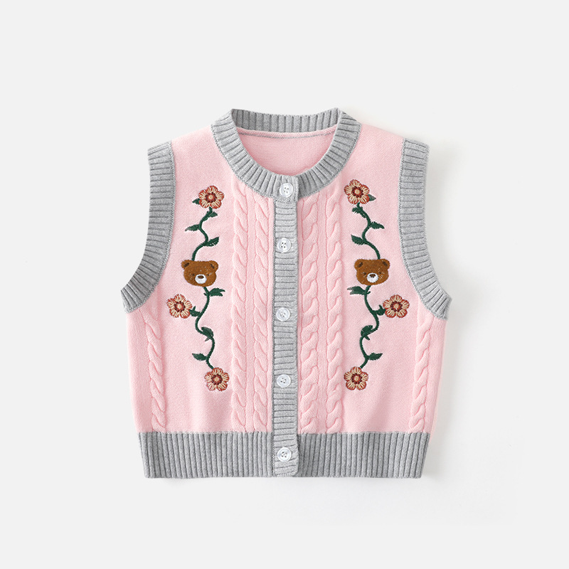 새로운 스타일의 소녀 자수 만화 카디건 유형 A 조끼 아기 소녀 라운드 넥 민소매 스웨터 어린이 따뜻한 조끼스토어 가기