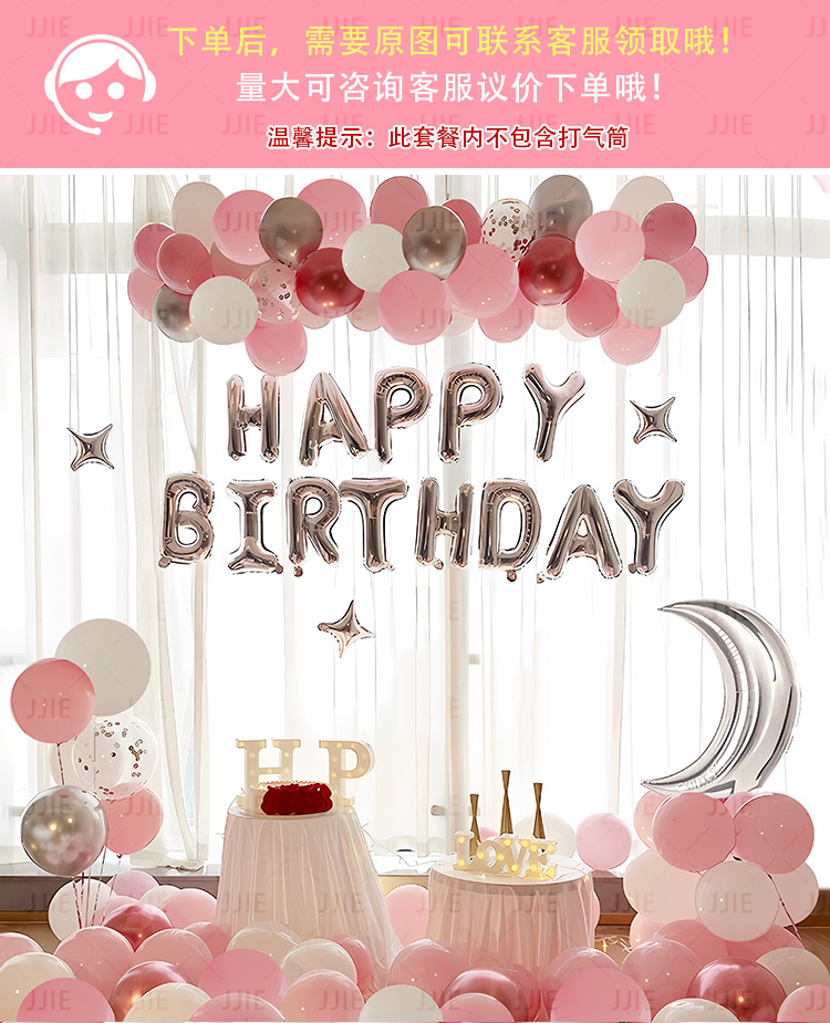 파티 장식 장면 레이아웃 배경 벽 장식 용품 하이 엔드 패키지 대외 무역 소녀 핑크 생일 풍선