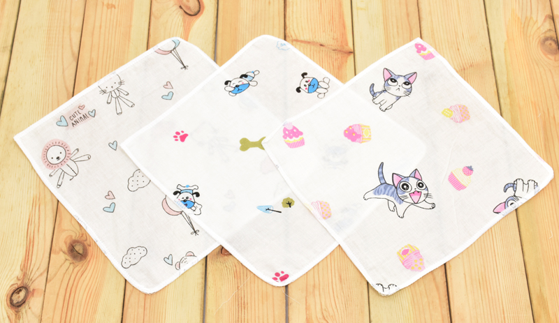 • 6겹 거즈 사각 스카프 3개, 랜덤 패턴, 여아 스타일 25* 25cm