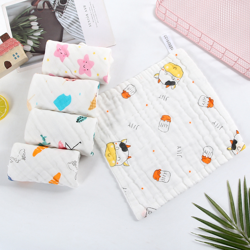 I 아기 작은 모래 수건 단층 거즈 침 수건 모래 수건 작은 사각형 수건 거즈 수건 손수건 아기 우유 넘침 수건