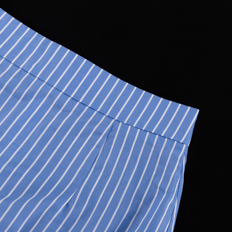 유럽과 미국 여성의 스트라이프 대비 컬러 스커트 정장 여성 라펠 긴팔 포켓 셔츠 하이 웨이스트 힙 스커트 투피스 세트스토어 가기