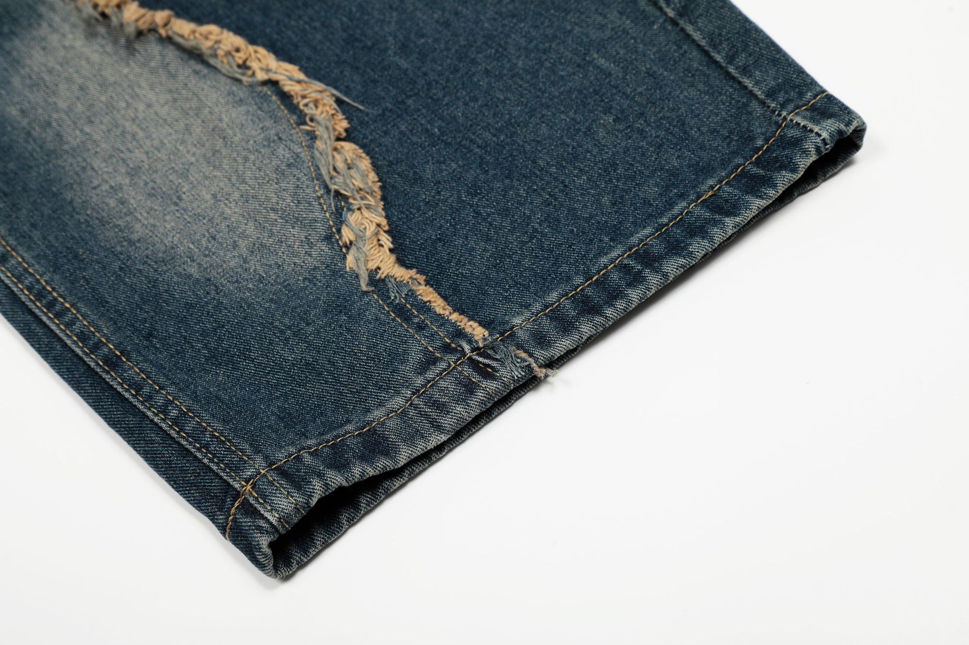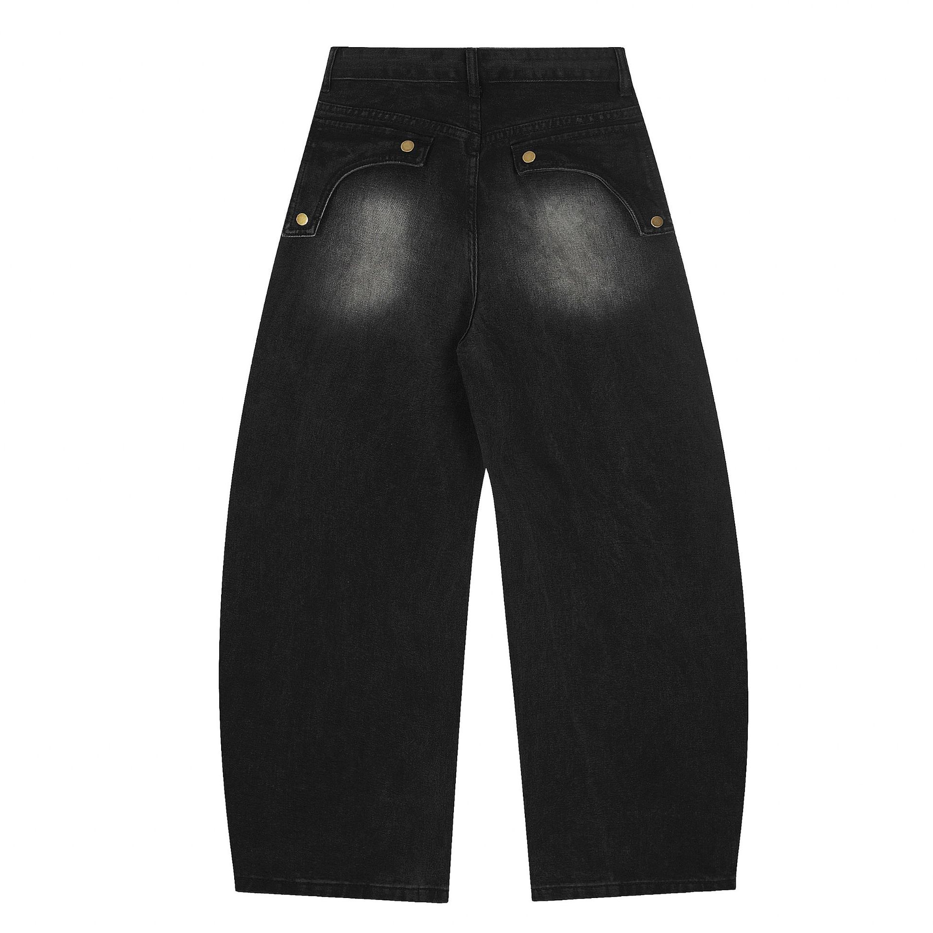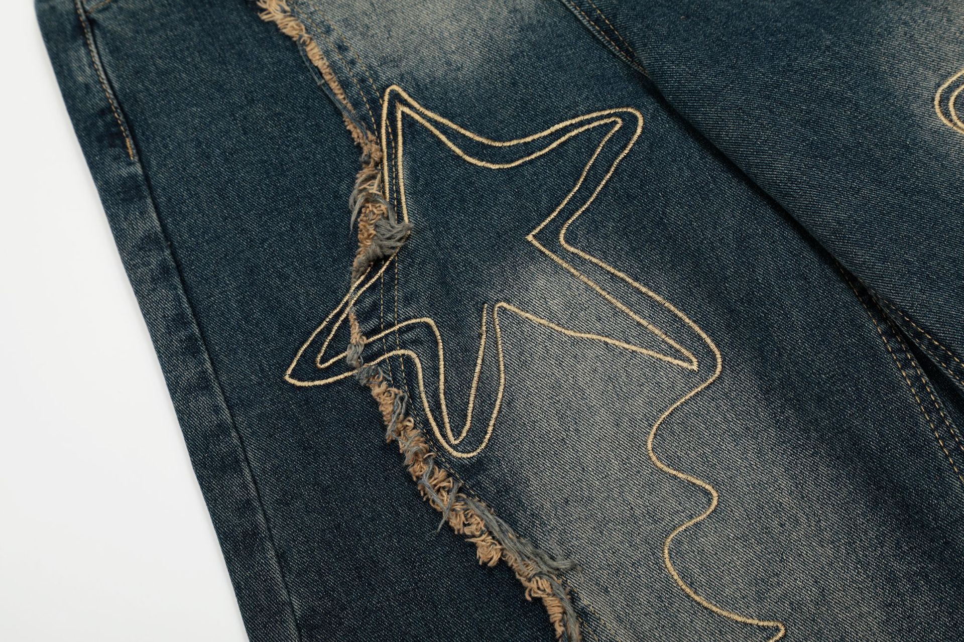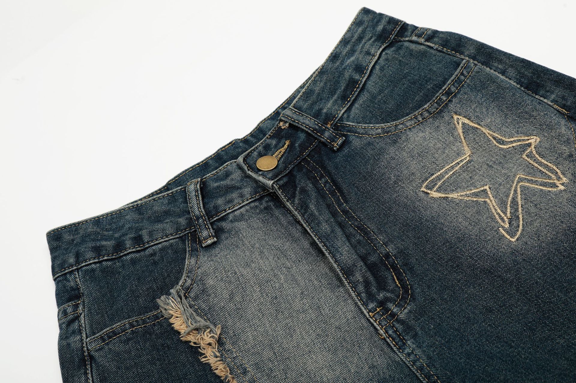 嘉衣库男装2025秋季美式复古刺绣水洗毛边牛仔裤男女弯刀阔腿长裤