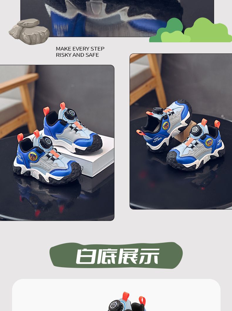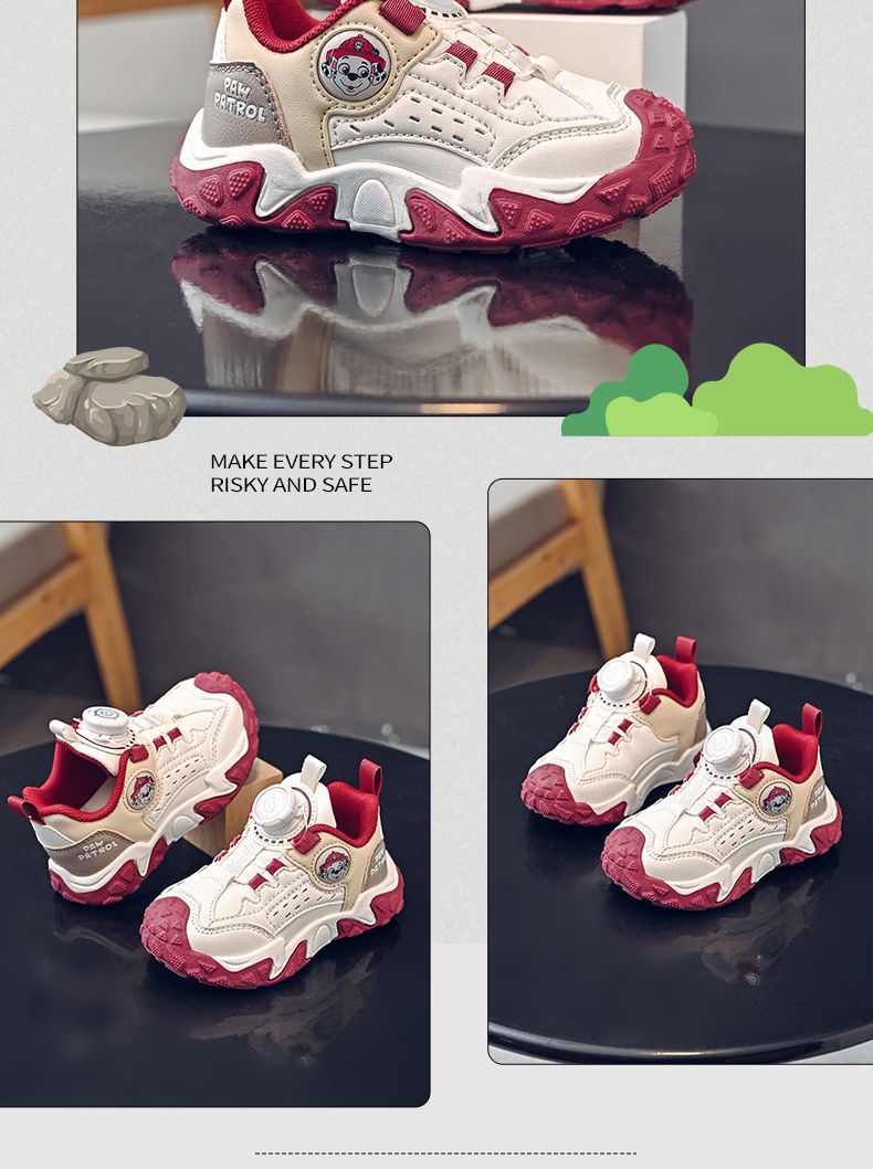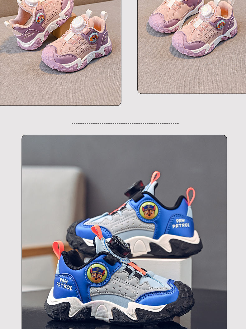 Wangwang 아동 신발 2025 봄과 가을 새로운 Ankora 빨간색 소녀 회전 버튼 소년 미끄럼 방지 유행 부드러운 밑창 운동화