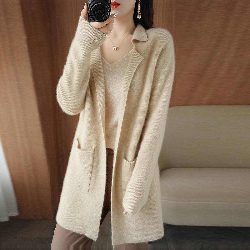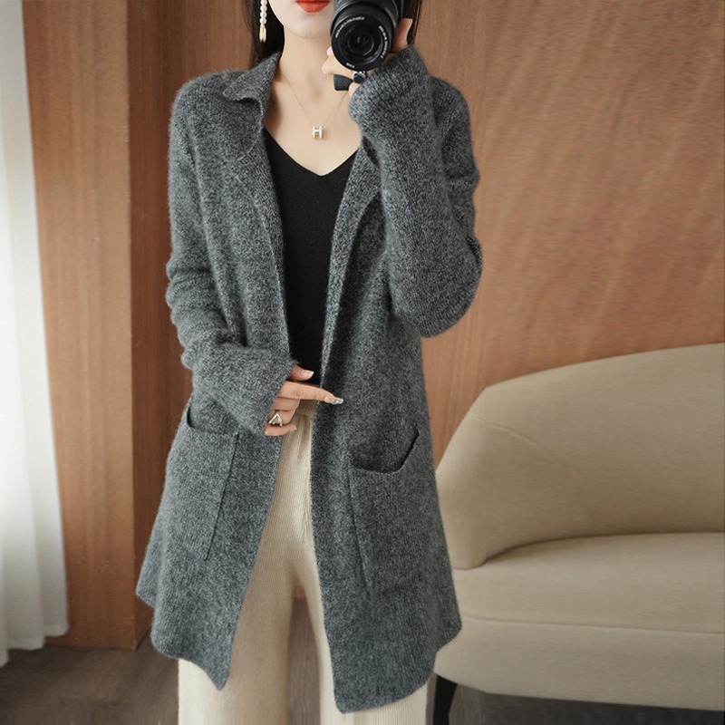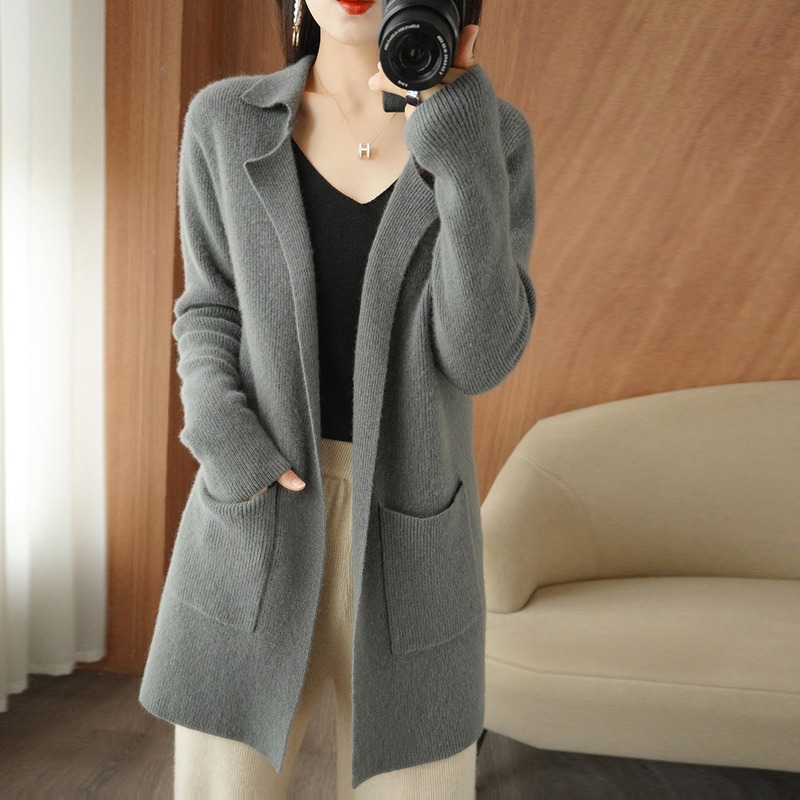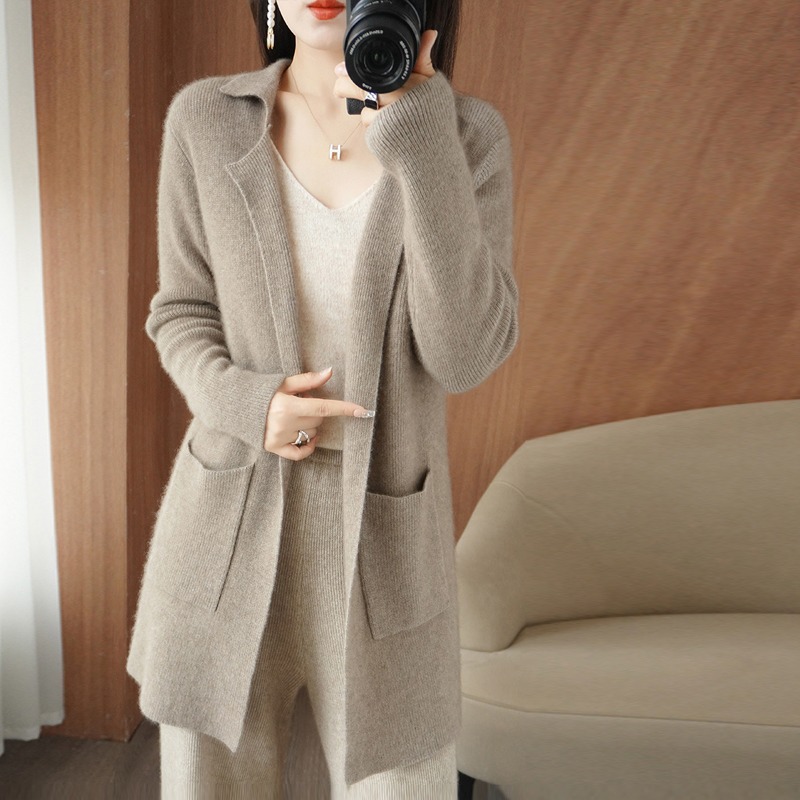 2025秋冬季新款韩版休闲西装领针织开衫女宽松慵懒风百搭毛衣外套스토어 가기