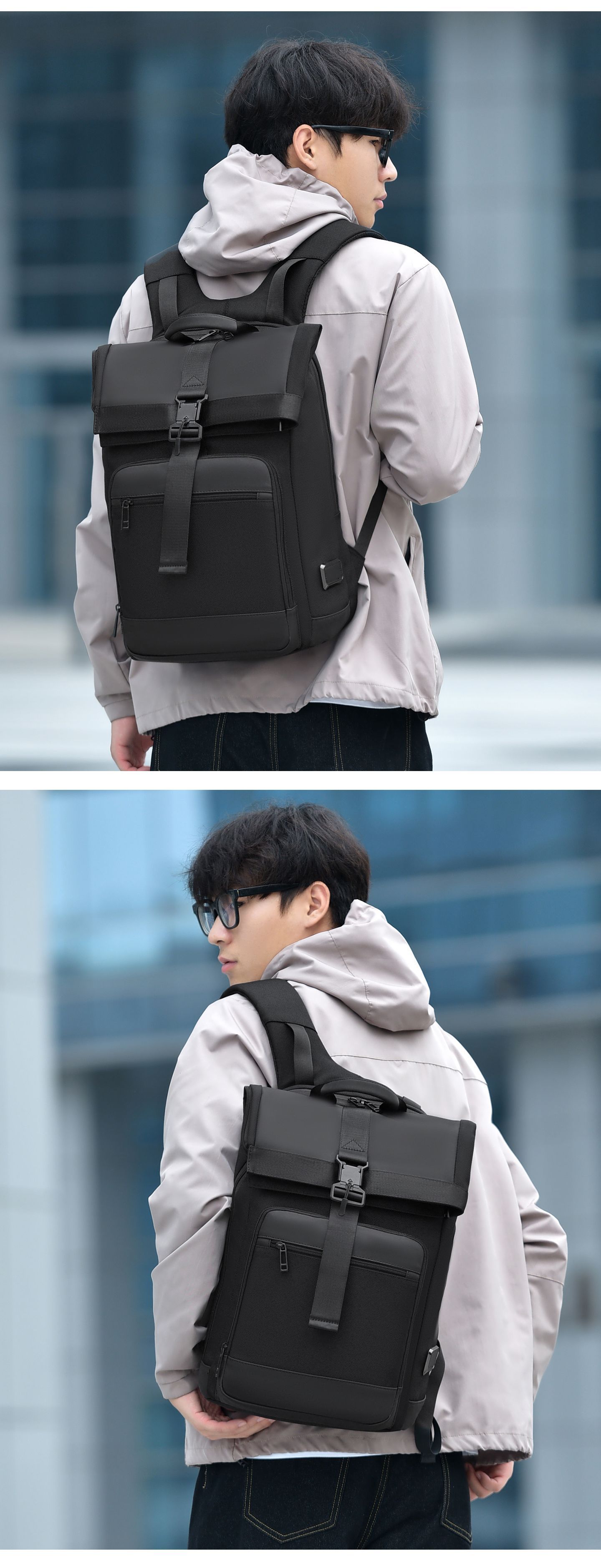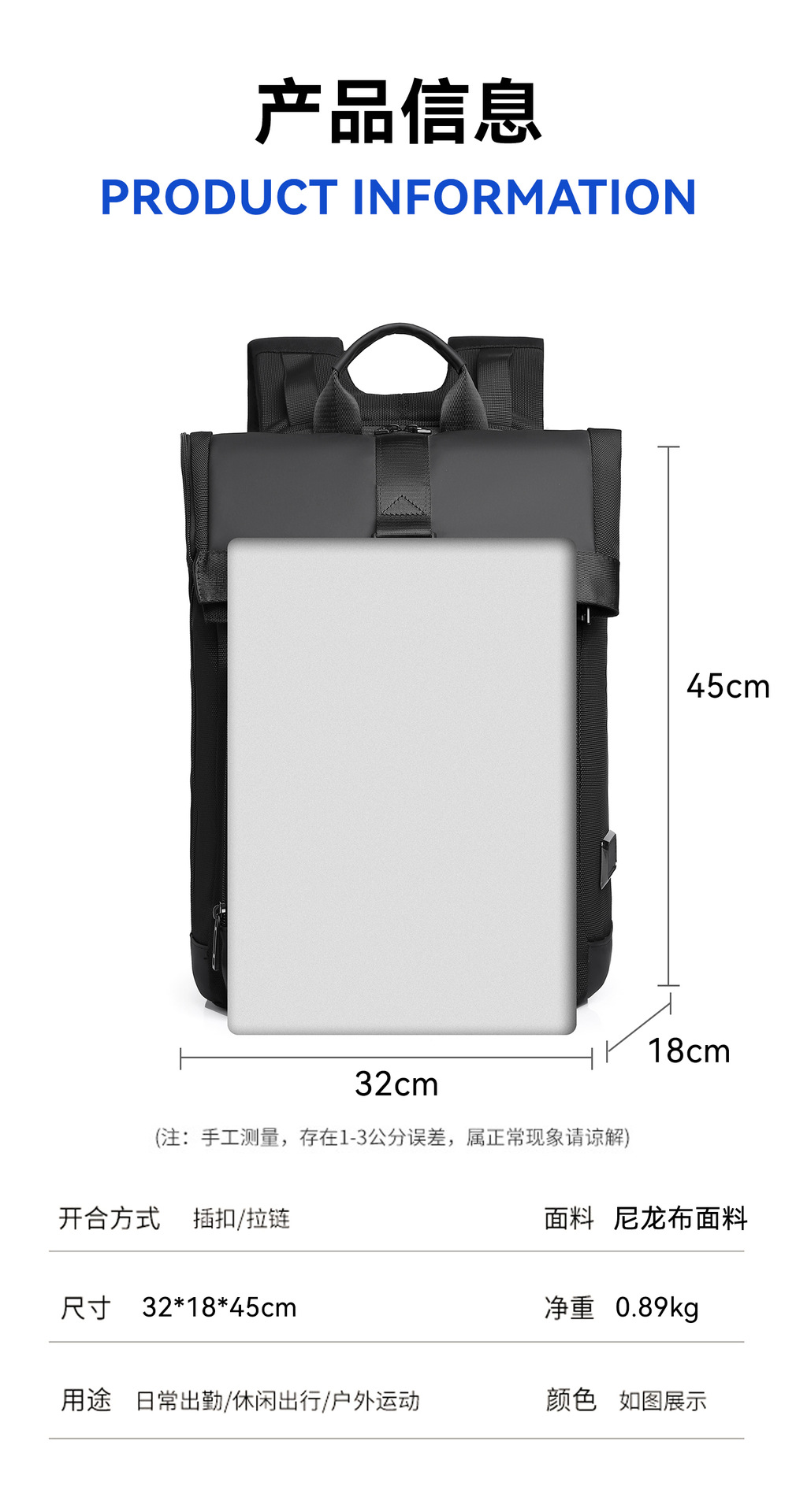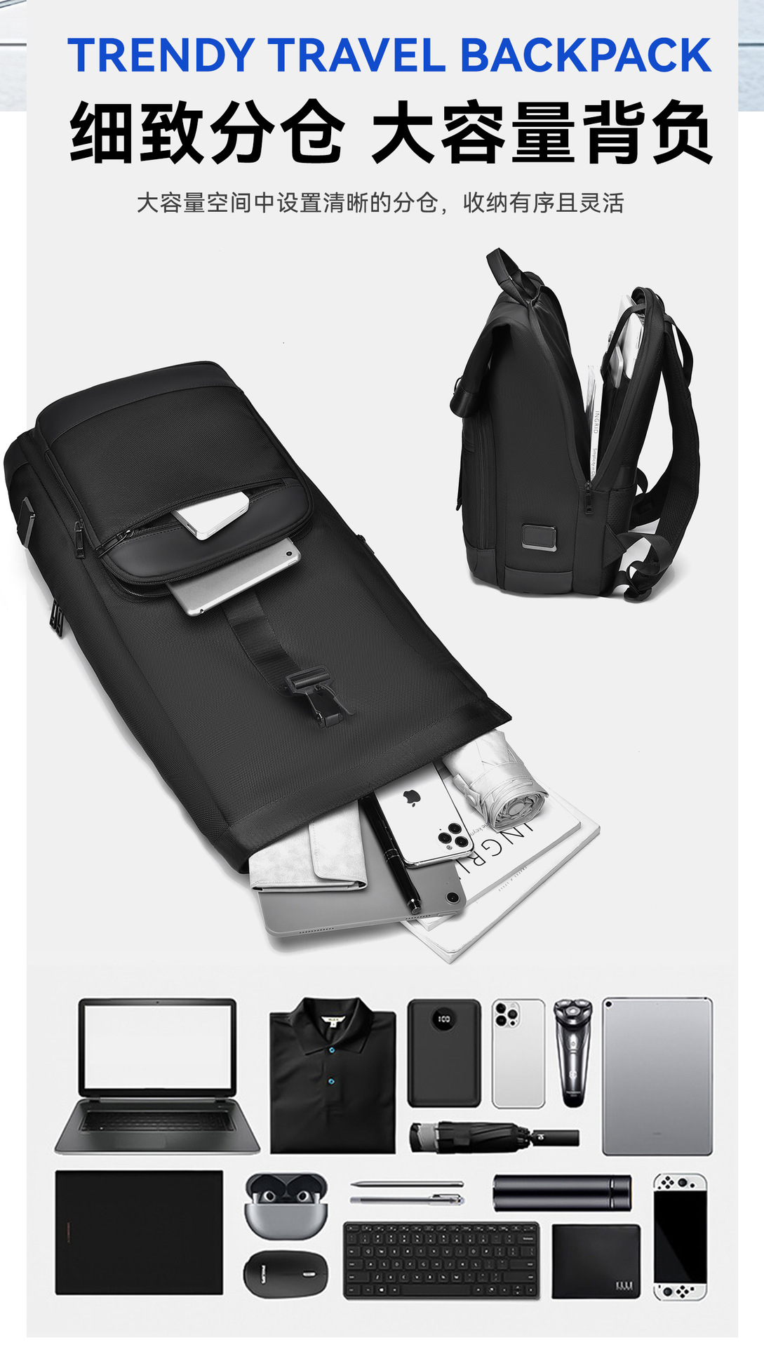尼龙双肩电脑包厂家休闲旅行双肩背包黑色时尚双肩包男简约大容量스토어 가기