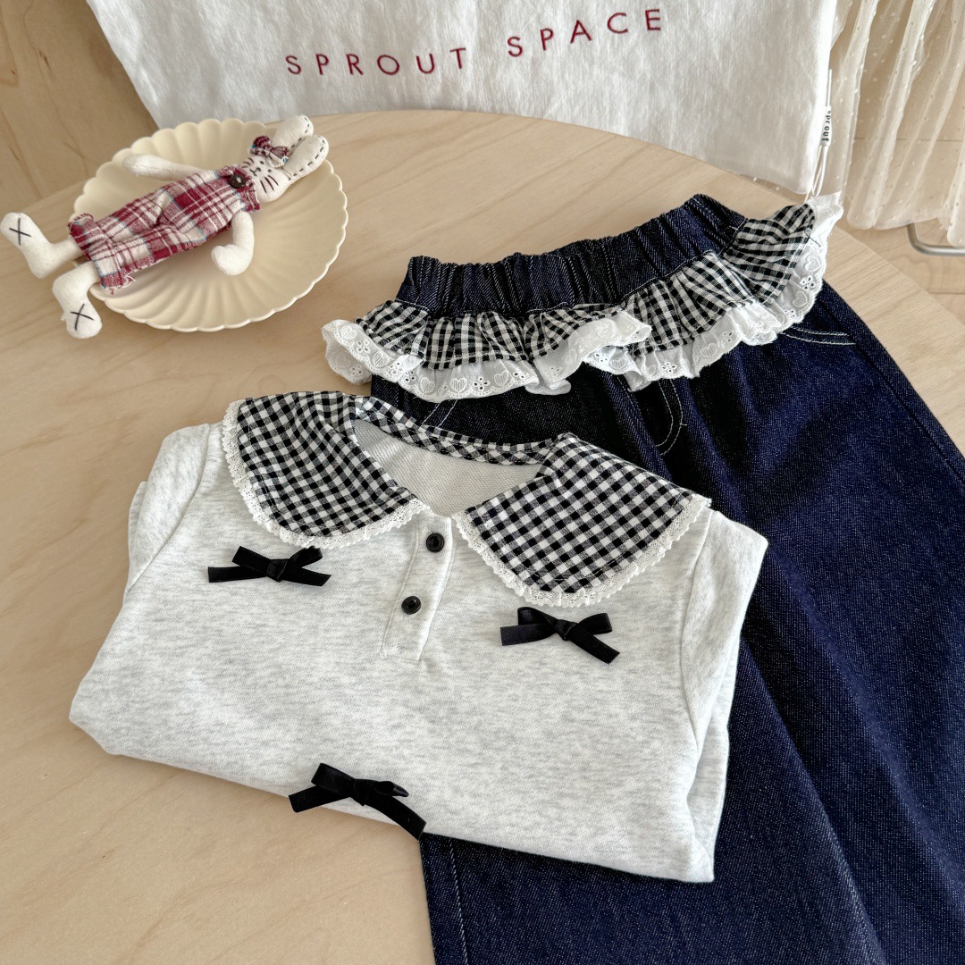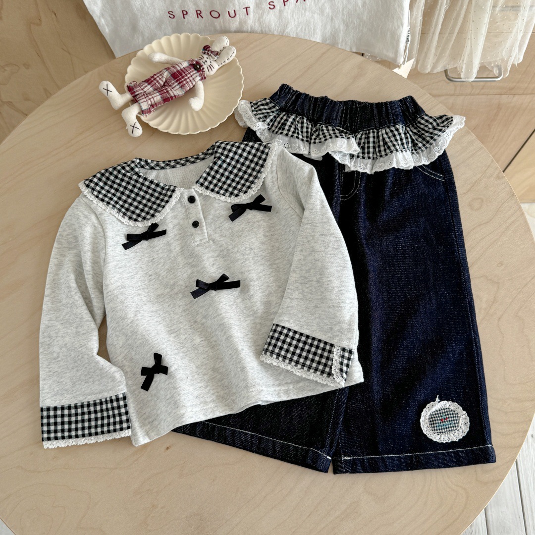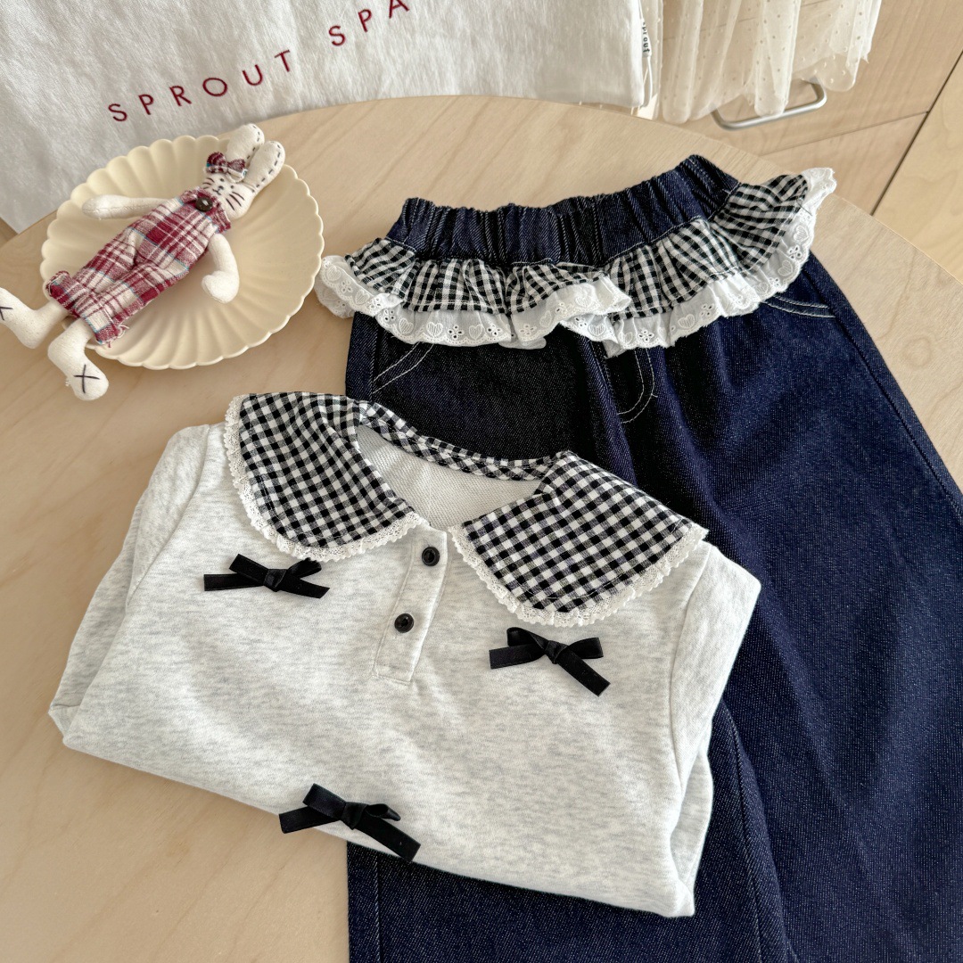 [핑크하우스] 여아복 세트, 유아용 세련된 긴팔 티셔츠, 가을옷, 인터넷 인기 아이템, 어린이 가죽 바지스토어 가기