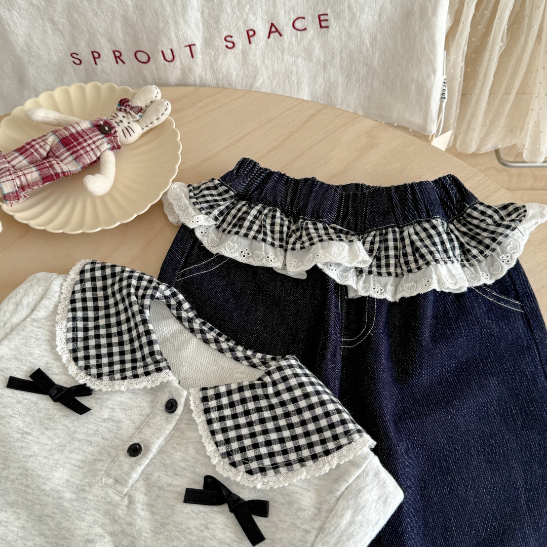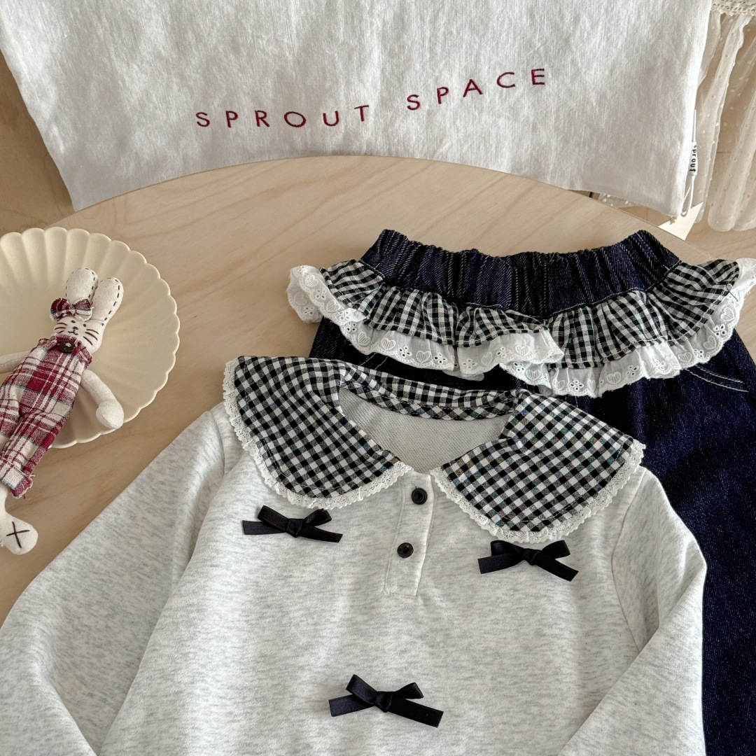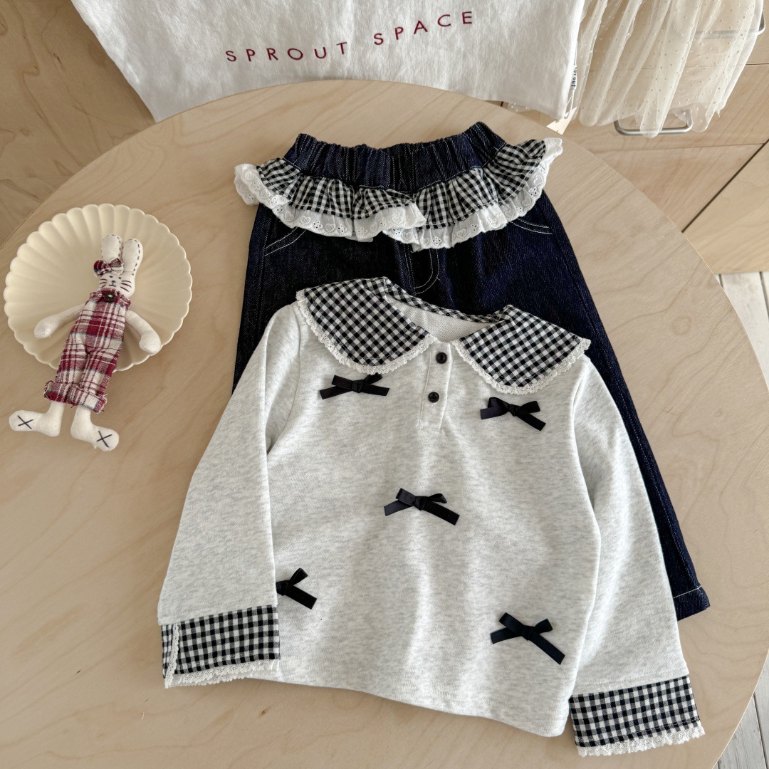 [핑크하우스] 여아복 세트, 유아용 세련된 긴팔 티셔츠, 가을옷, 인터넷 인기 아이템, 어린이 가죽 바지스토어 가기